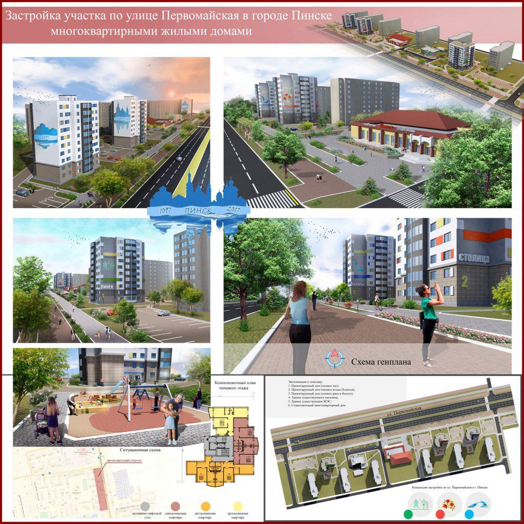 Власти Пинска хотят продолжить застраивать Первомайскую улицу. Уже разработана архитектурно-планировочная концепция «Группа многоквартирных жилых домов по ул. Первомайской в г. Пинске». Заказчиком стало дочернее коммунальное унитарное предприятие по капитальному строительству «УКС города Пинска». Разработчиком выступило открытое акционерное общество «Брестпроект».
