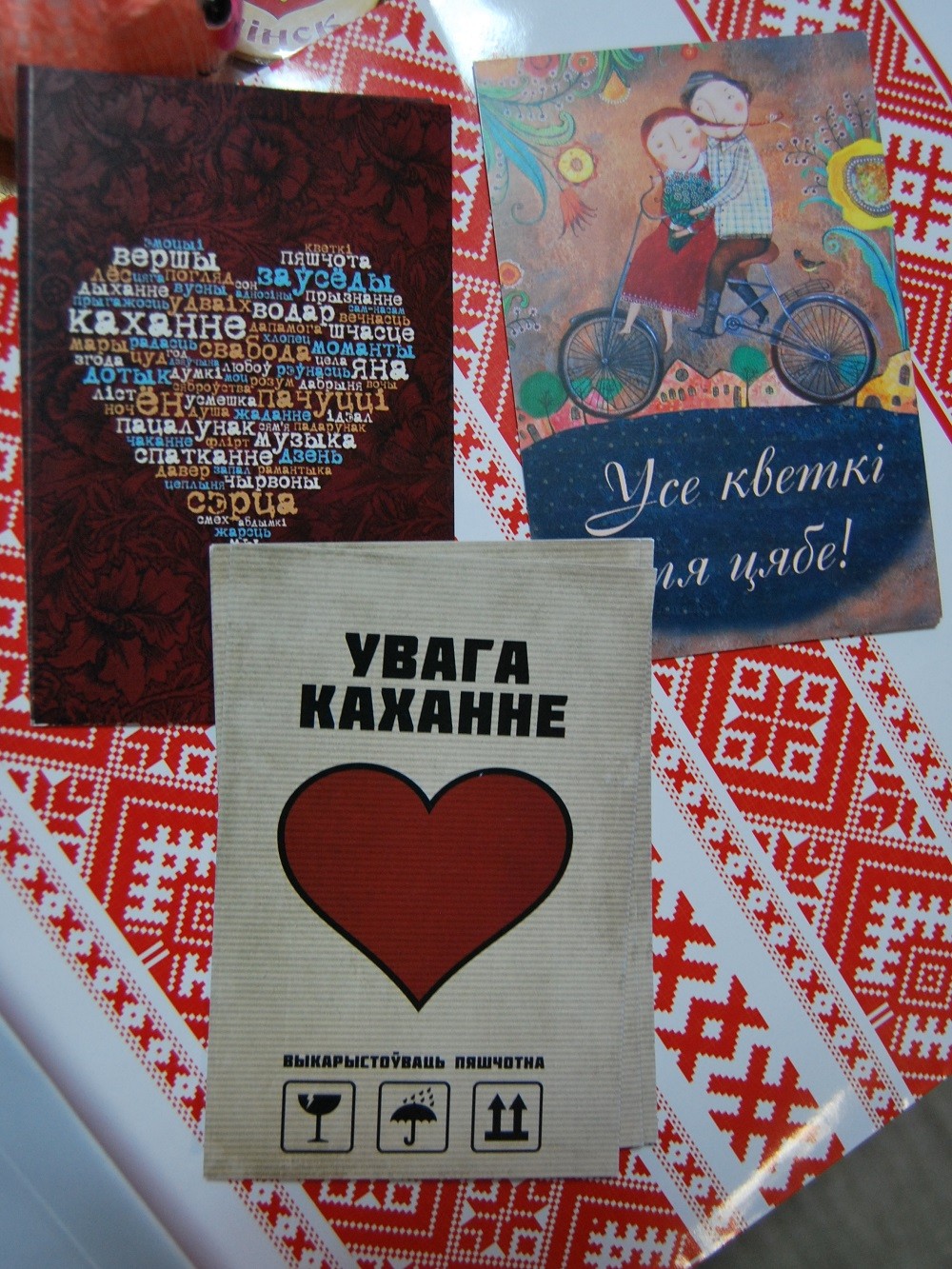 Вялікі выбар тэматычных падарункаў сувеніраў і паштовак у тым ліку на роднай мове.