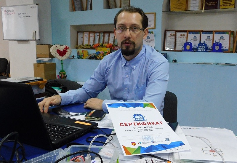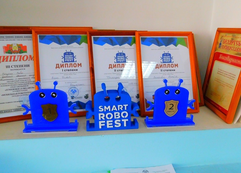 Павел Войтович: «Конструирование роботов в Пинске — занятие достаточно молодое. Нашему кружку всего год и несколько месяцев. Но нам уже сейчас есть кем гордиться. Недавно мы участвовали в подобных соревнованиях в Гомеле, оттуда привезли дипломы призёров. На этот раз 1,2 и 3 место. Я думаю это хороший старт и достойное выступление».