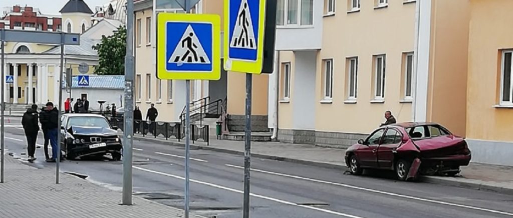«БМВ, на большой скорости пересекала Белова, (светофор не работал) где не уступив БМВ х5 задев бортом капот, вылетел на Горького, где влетел в Рено, при этом развернув его при столкновении,» — сообщают в группе Zello «Пинск ГАИ».