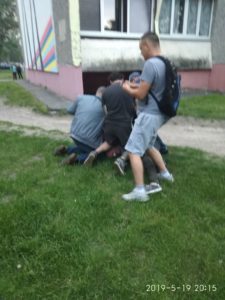 По словам очевидцев, водитель и пассажир иномарки были в нетрезвом состоянии: еще до прибытия сотрудников ГАИ и вневедомственной охраны их задержали местные жители.