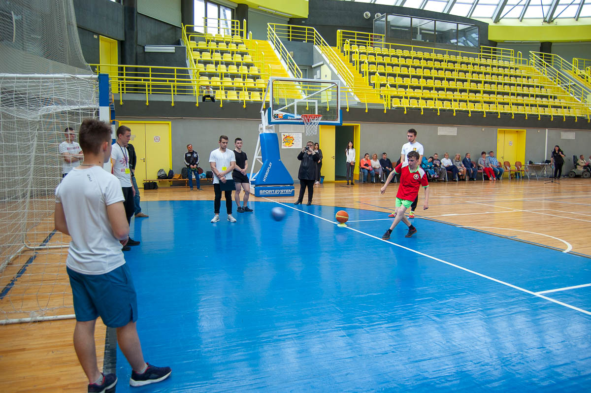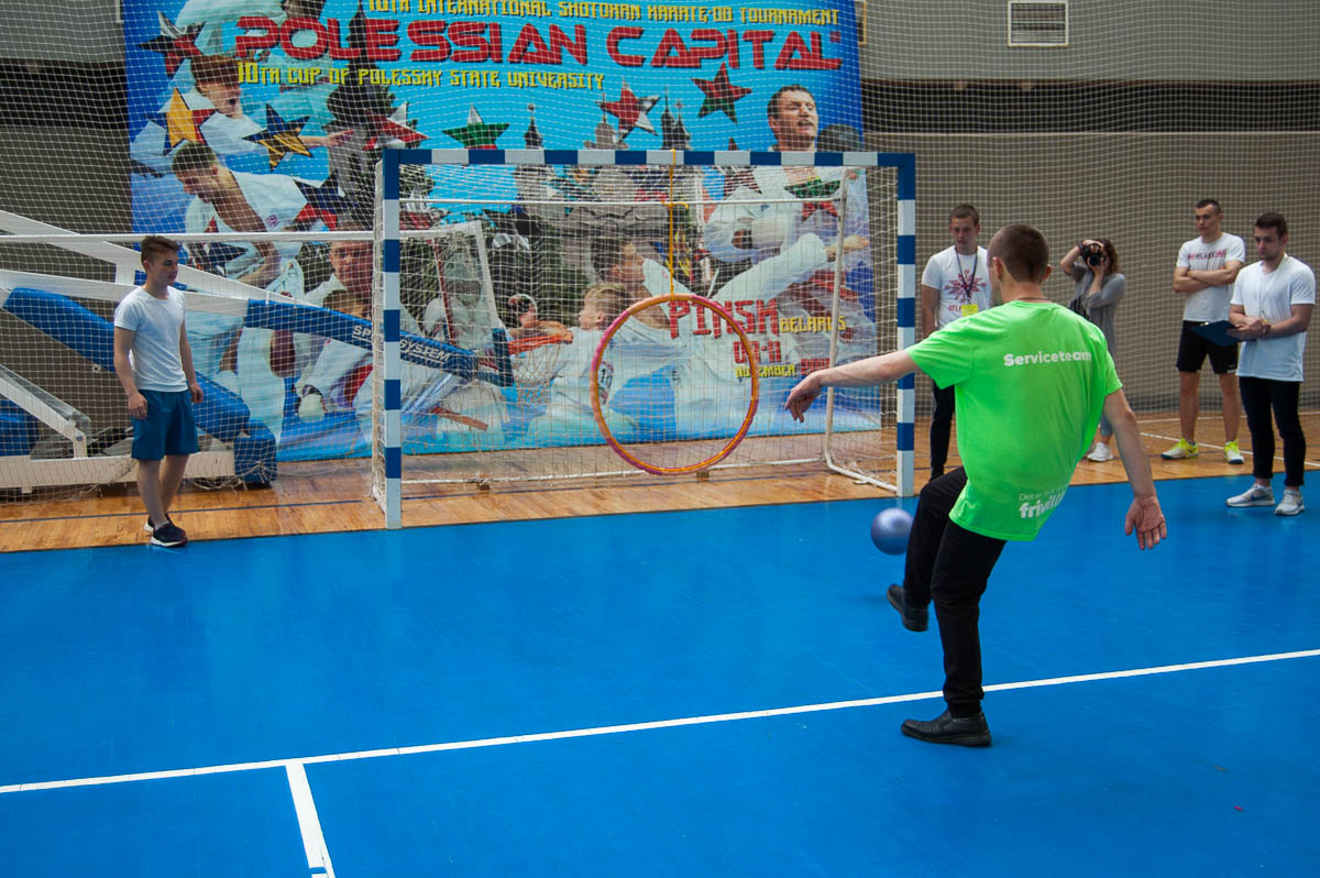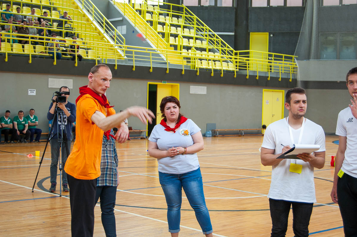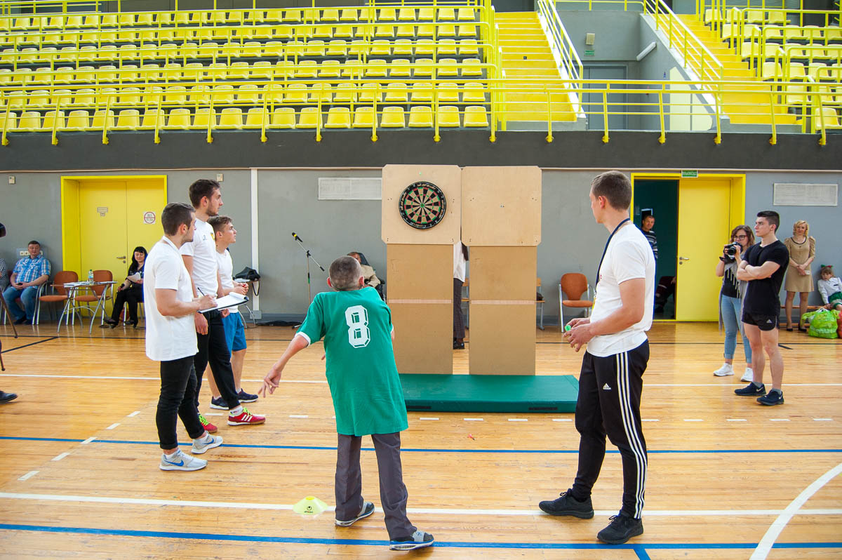 Каждому из них предстояло, в составе своей команды, пройти подготовленные для них испытания. Здесь нужно было забросить мяч в корзину, метко забить в ворота, набрать максимум очков в дартс, сбить кегли и многое другое.