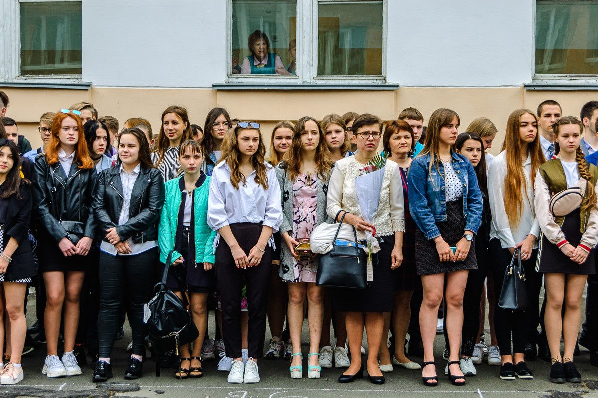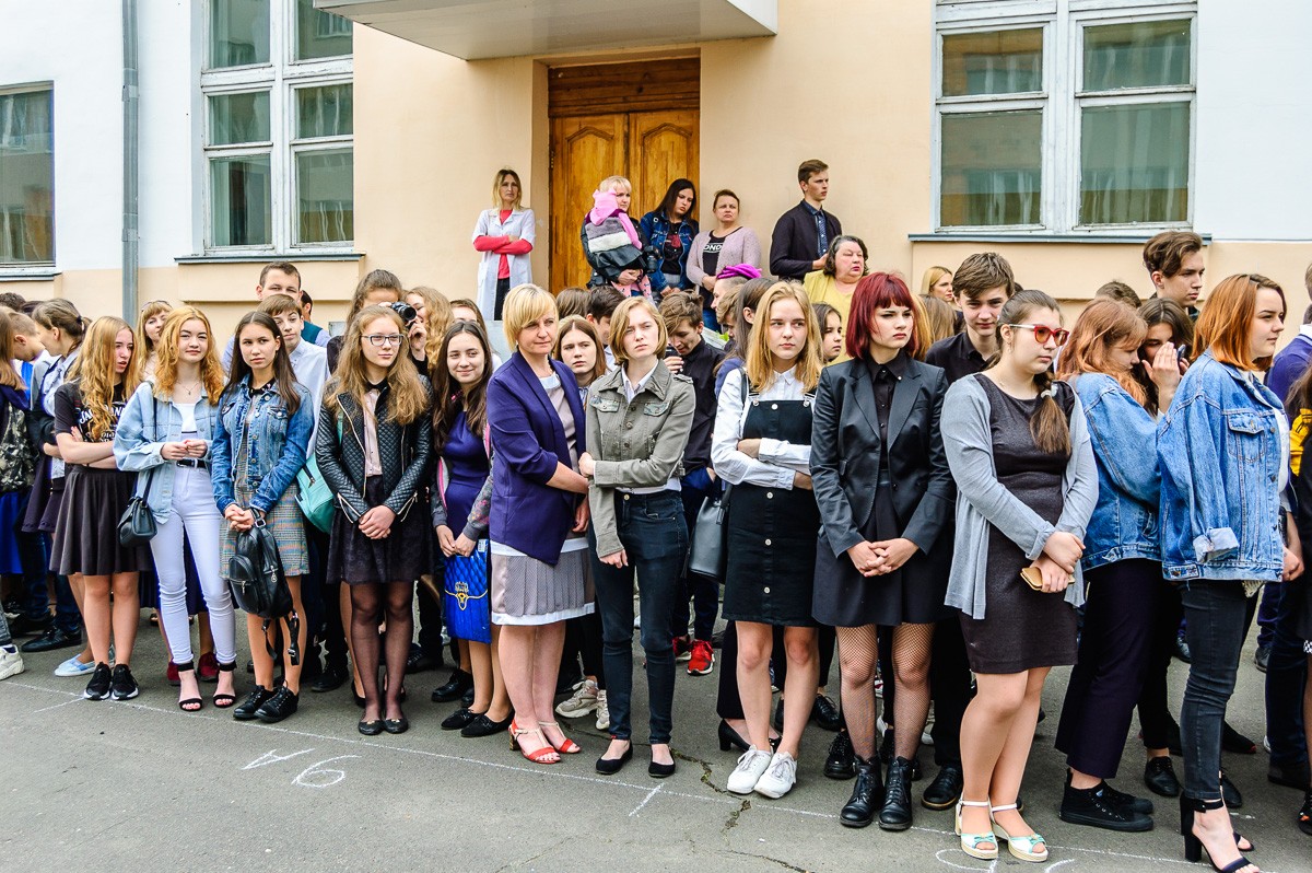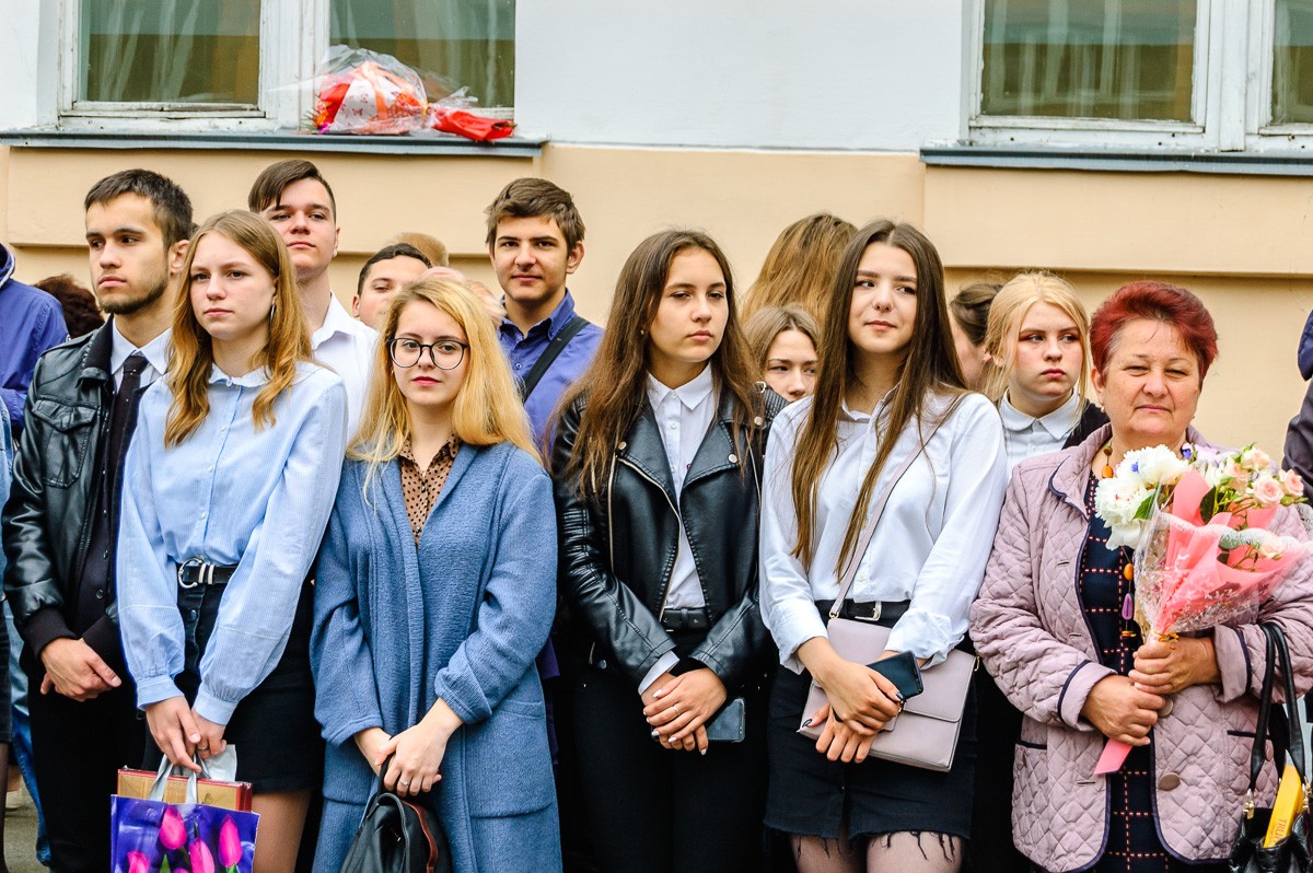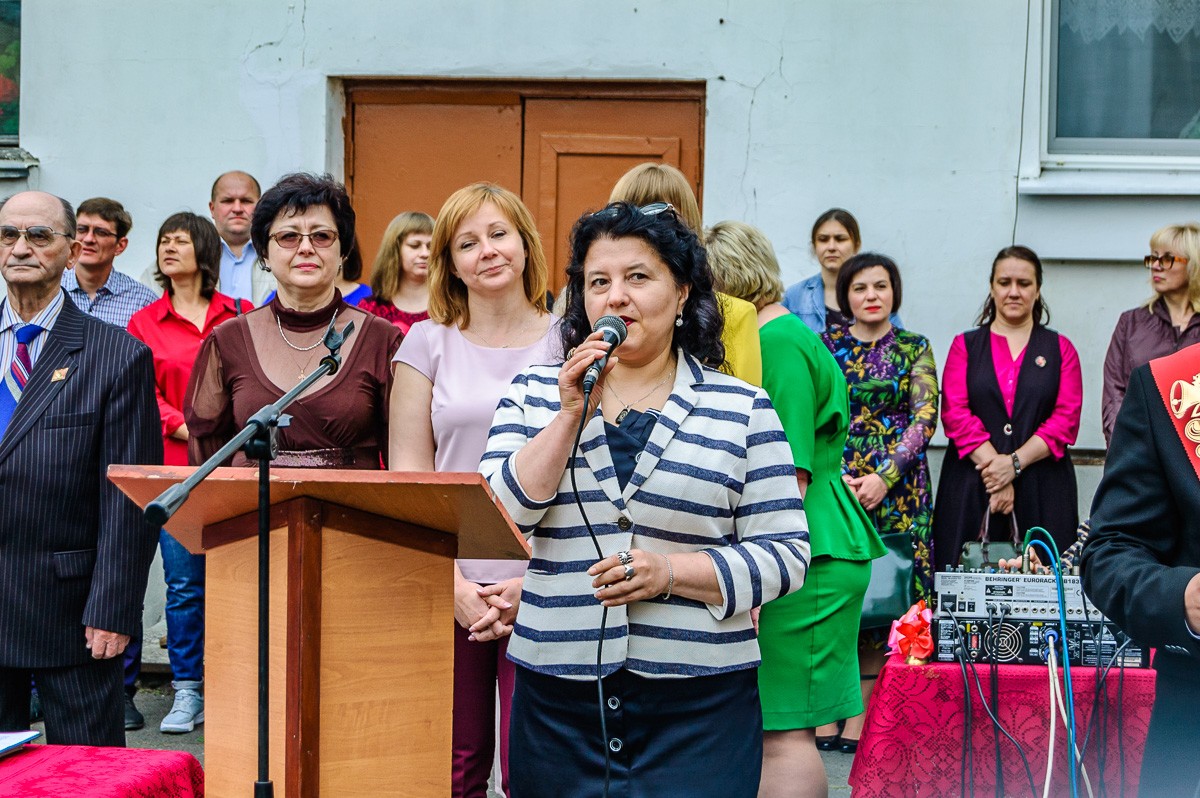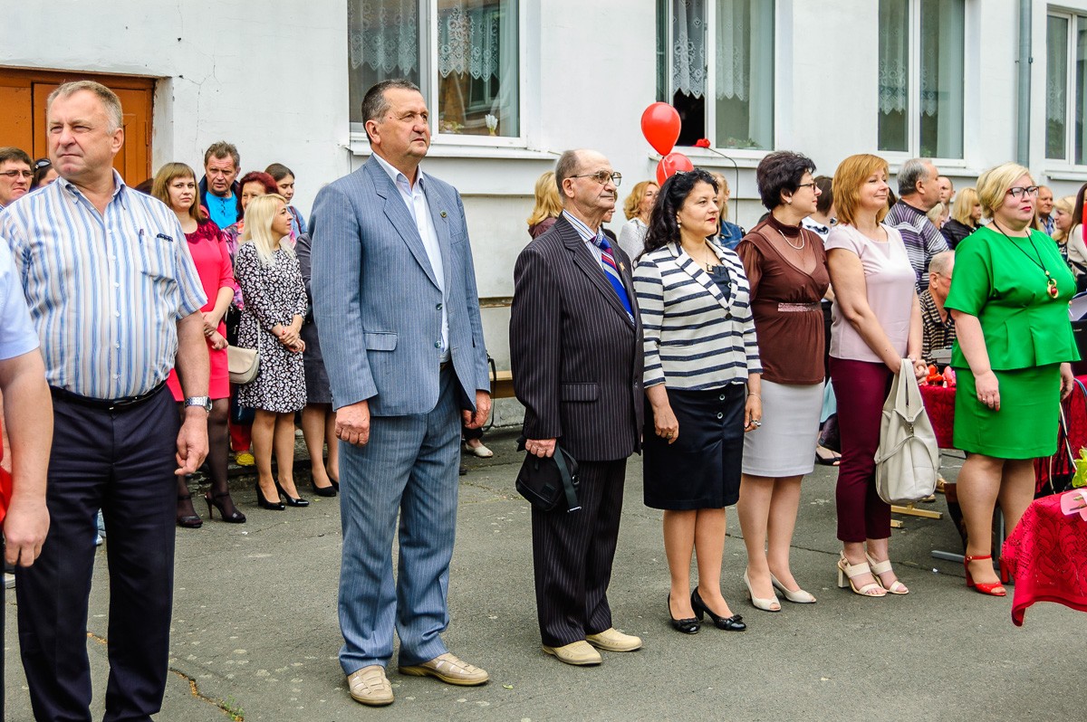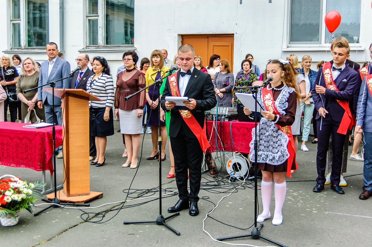 На линейке присутствовали учащиеся школы, их родители, представители городских организаций, а также выпускники 1979 года. К собравшимся обратилась директор школы Елена Лобачевская и пожелала всем выпускникам доброго жизненного пути.