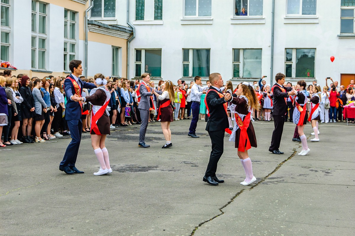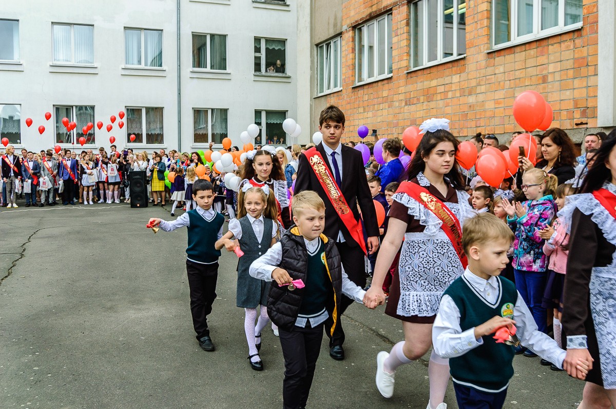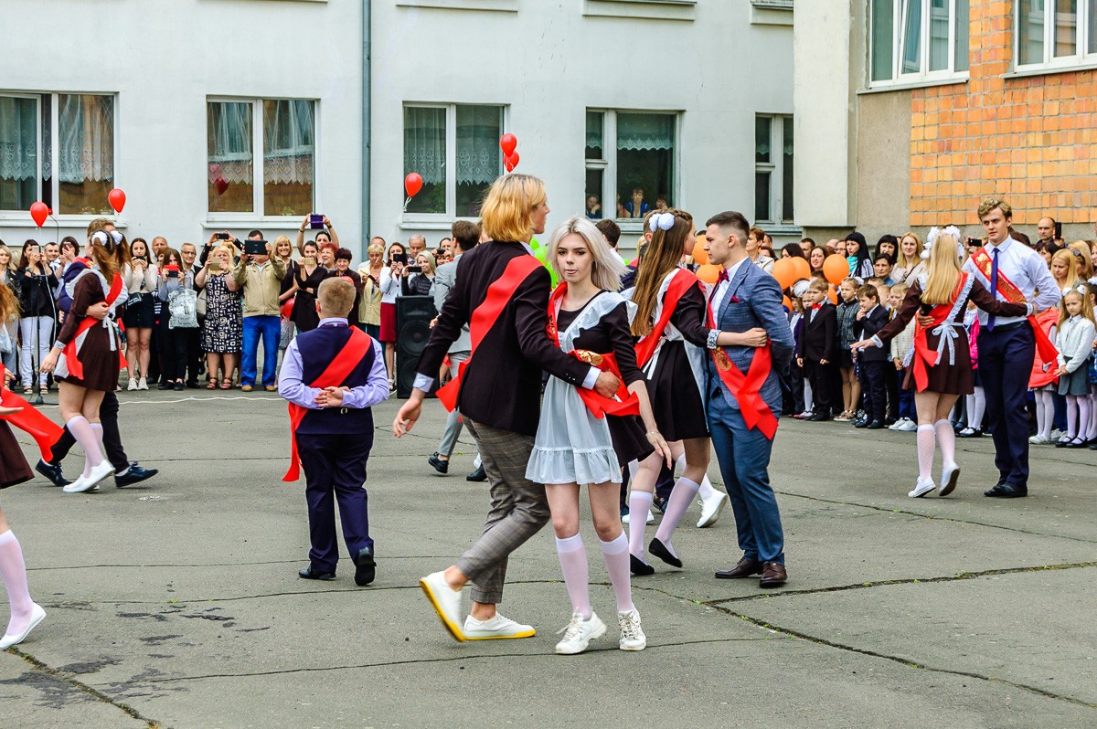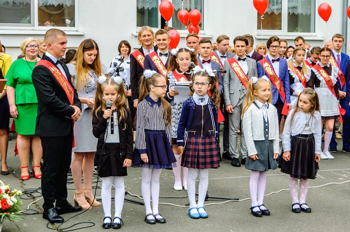 На линейке звучали напутственные речи от почетных гостей, родителей, первоклашек. Выпускники, по традиции, исполнили школьный вальс и запустили в небо воздушные шары. Завершил линейку последний школьный звонок.