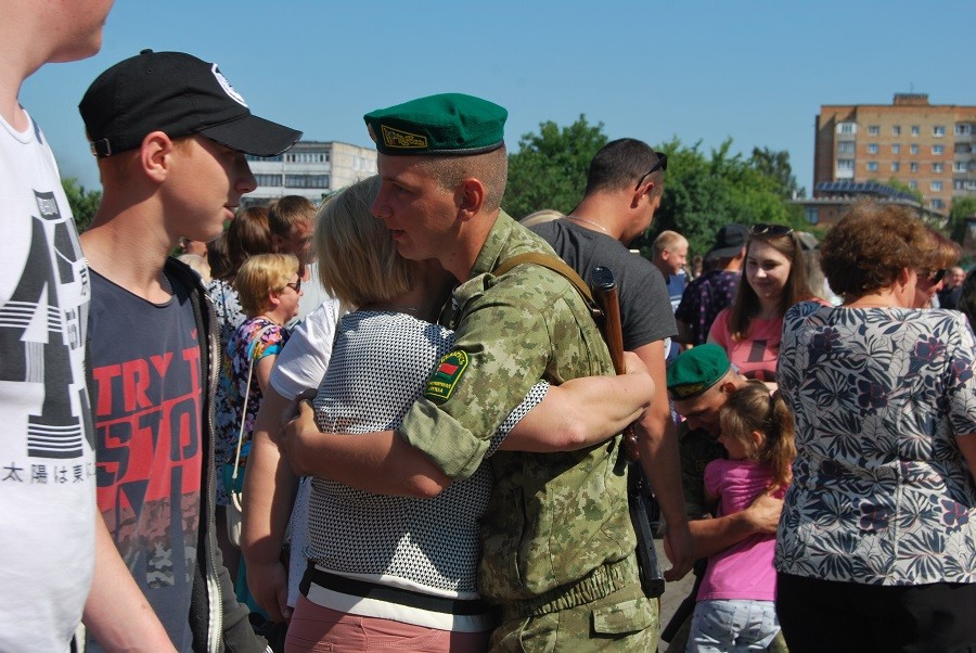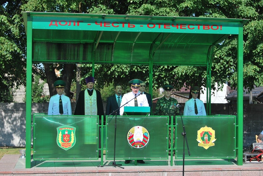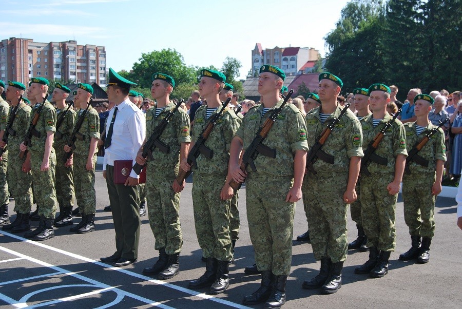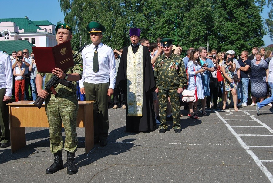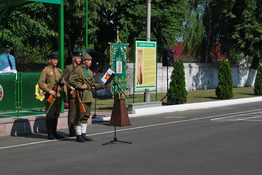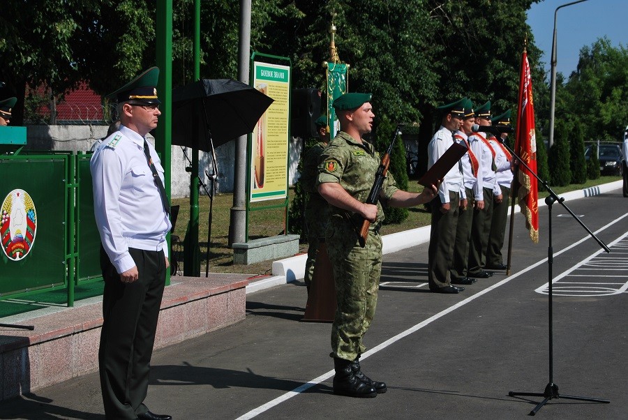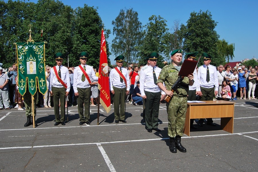 Воинский ритуал проходил на плацу воинской. В начале мероприятия прозвучал государственный гимн РБ, почётный караул вынес боевой знамя воинской части. С приветственным словом к новобранцам обратился начальник Пинского погранотряда Андрей Волков.