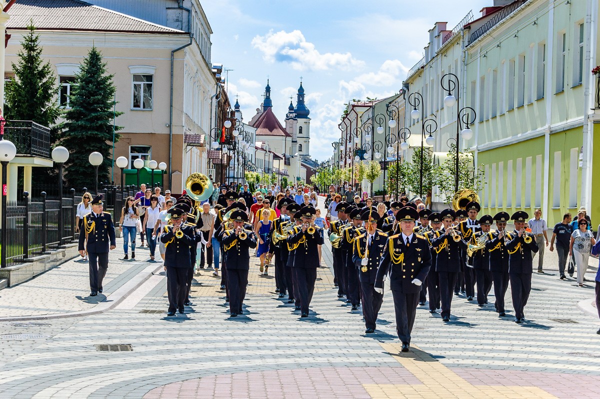 Коллективы духовых оркестров под музыку прошли марш-парадом по ул.Ленина. Их приветствовали пинчане, которые снимали парад на камеры своих телефонов.