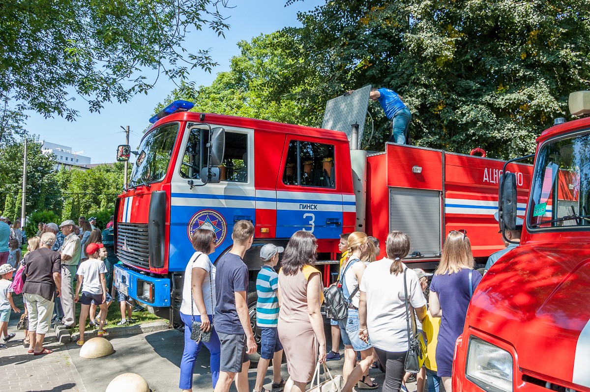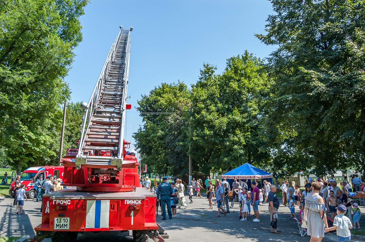Для гостей и жителей Пинщины в воскресенье, 21 июля, были подготовлены показательные выступления подразделений МЧС Пинского региона. У детей и их родителей была возможность ознакомиться с пожарной аварийно – спасательной техникой, оборудованием и снаряжением спасателей.