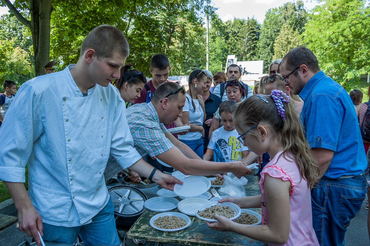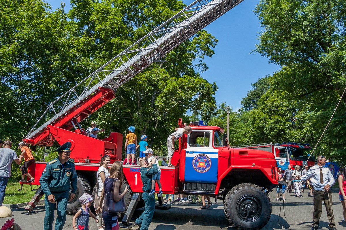 Также в парке работали площадки конкурсных и развлекательных программ для детей. В них можно было примерить на себя форму спасателя, посидеть в пожарной машине или катере, отведать каши из солдатской кухни, проверить свои знания правил пожарной безопасности.