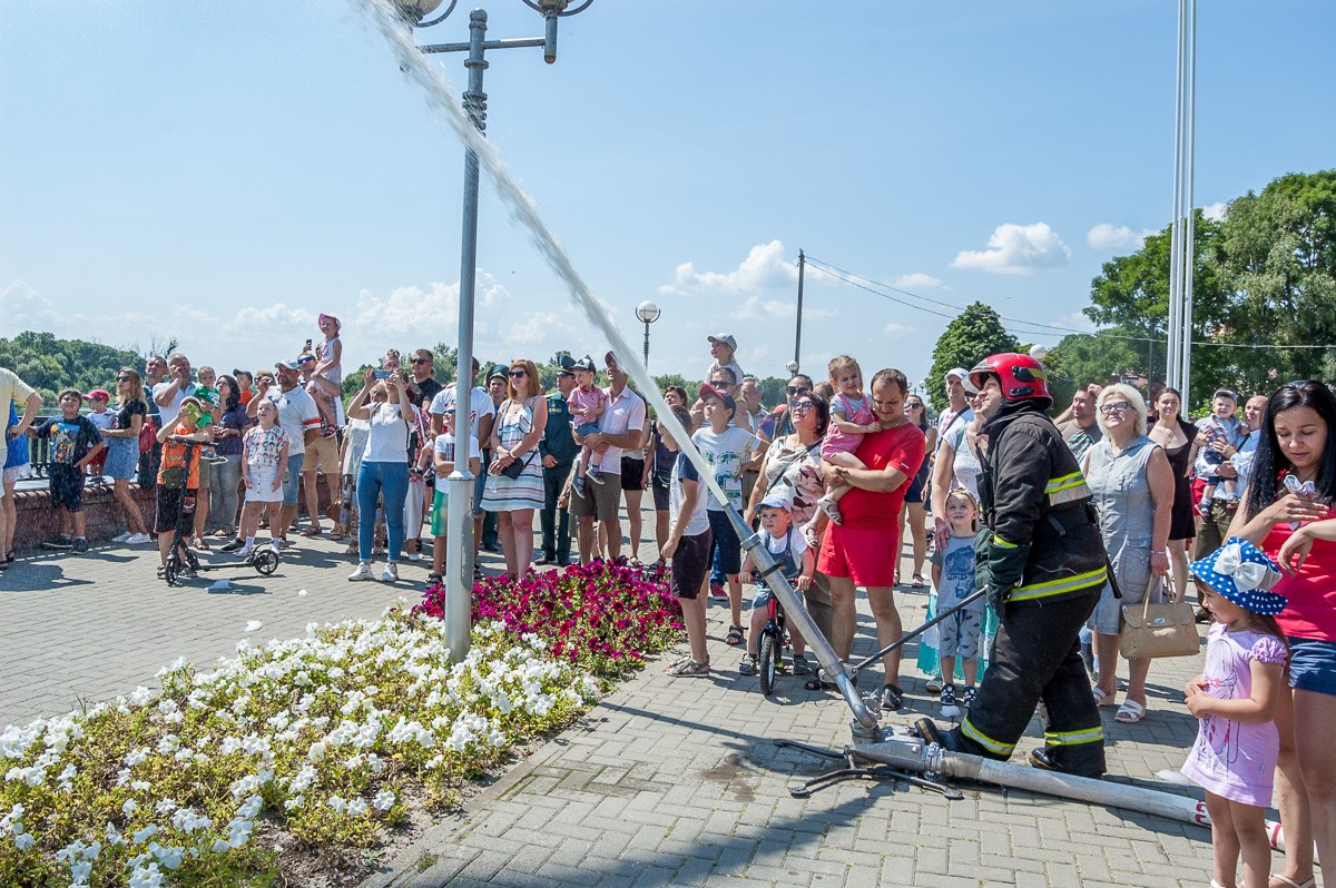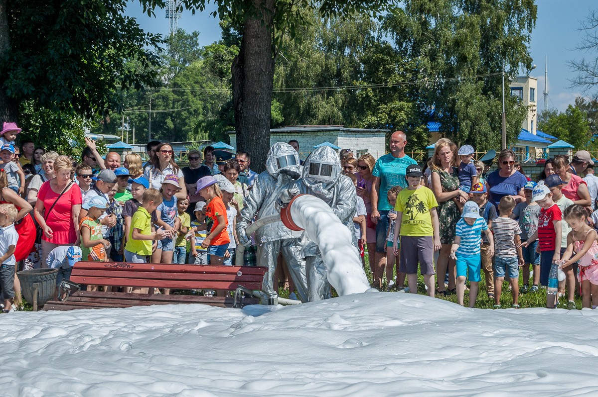 Особый восторг у детей вызвало тушение огня с помощью пены. А водная феерия, устроенная пожарными, охладила зрителей в жаркий воскресный день.