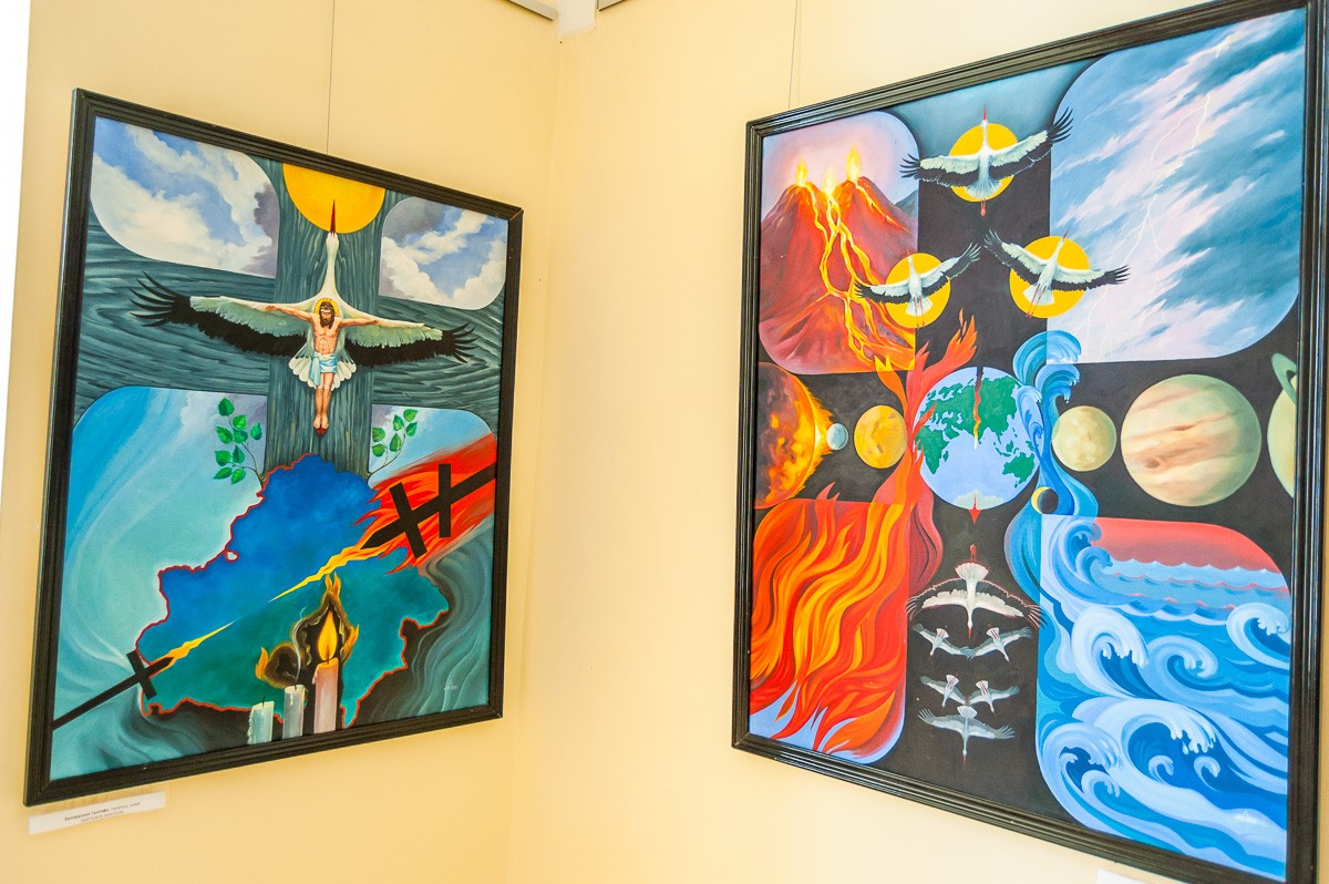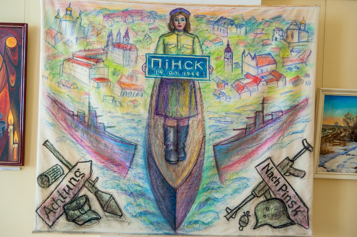 Особенностью выставки является то, что авторы работ — не пинчане. Это 11 художников из Берёзы, Узды, Гродно, Слонима и Минска. Тематика работ самая разная: здесь и натюрморты, и сценки из городской жизни, архитектура и многое другое. Работы выполнены маслом и акварелью; представлены также и несколько гобеленов. Продлится выставка до 1 сентября.