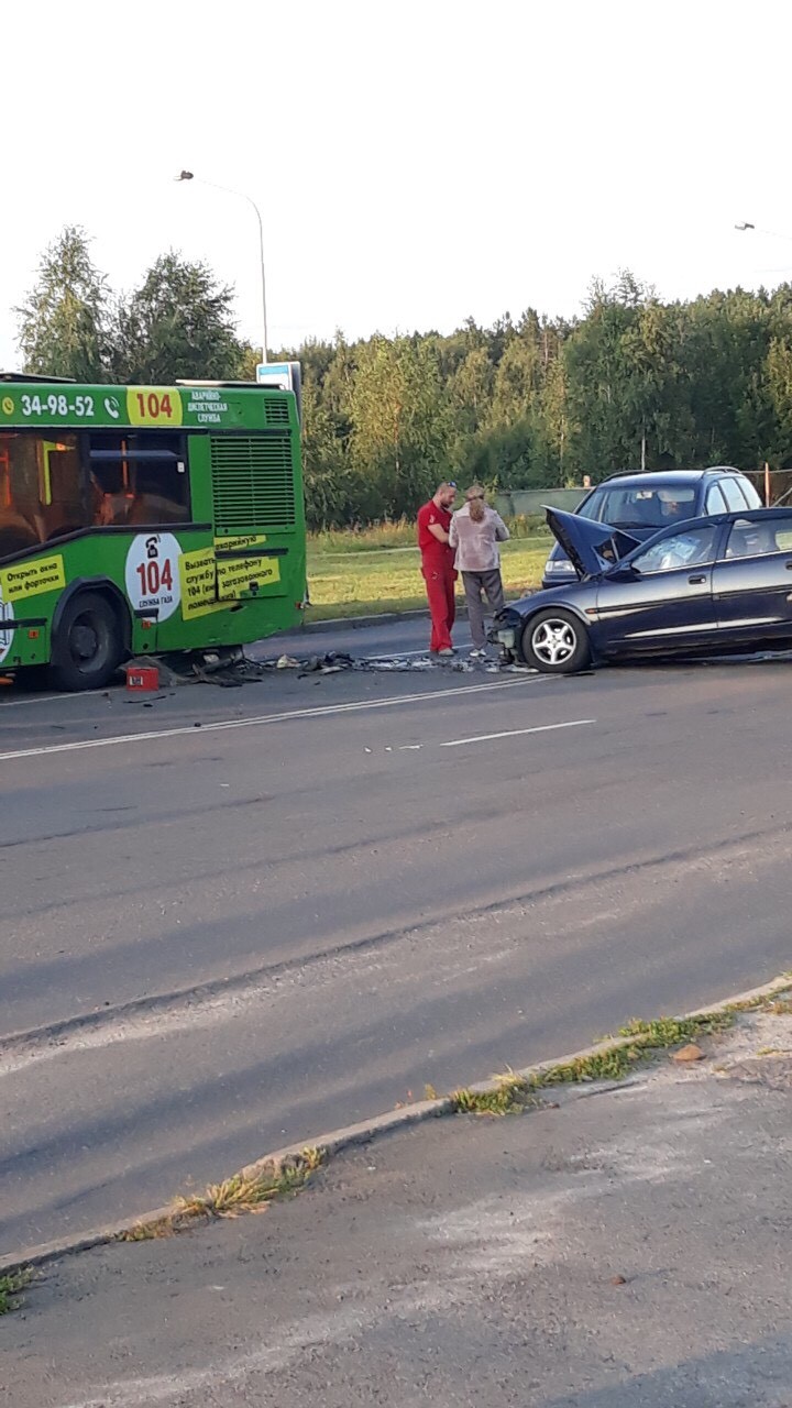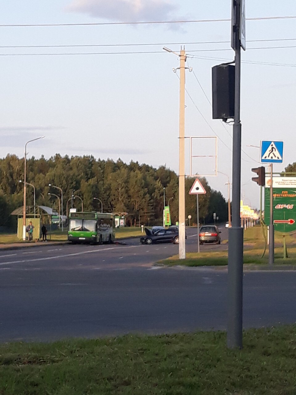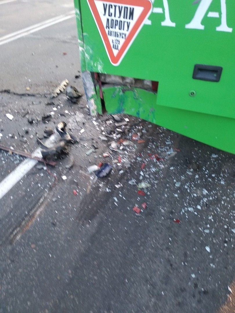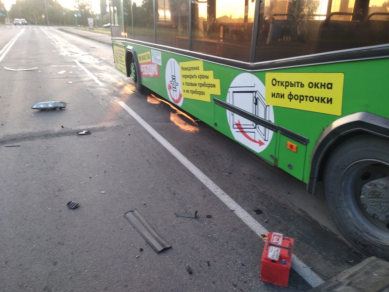 Прямо на остановке легковой автомобиль совершил столкновение с автобусом. Сведений о пострадавших нет.