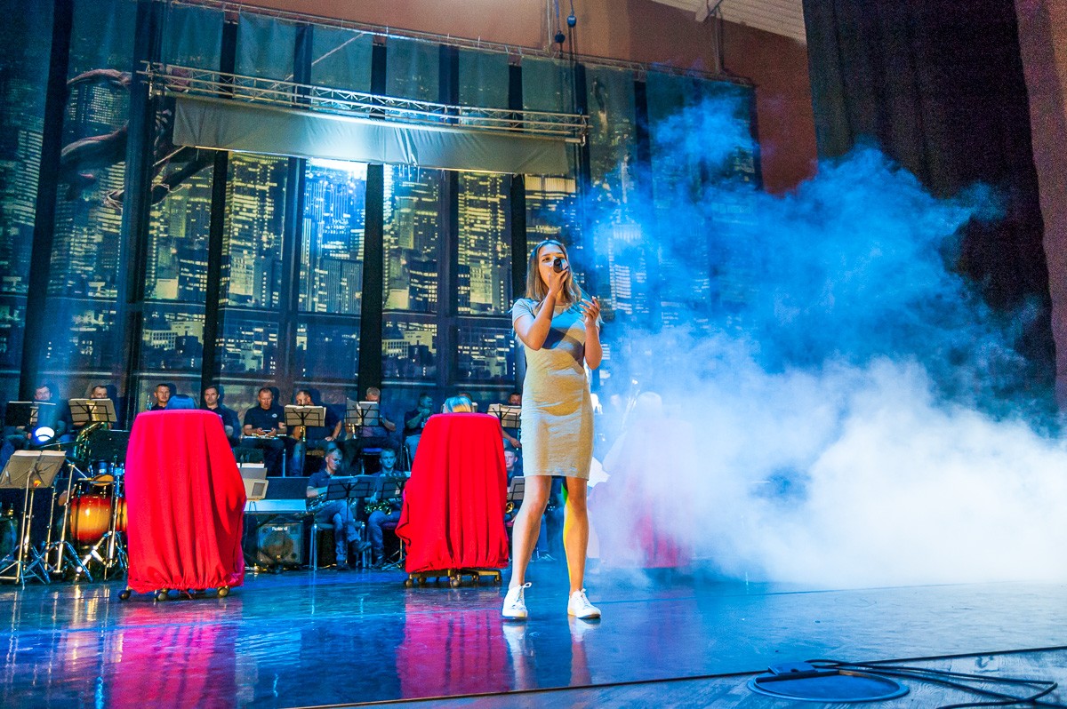 Конкурс «Супер Голос» сделали почти как по телевизору: с членами жюри, которые сидели в креслах на сцене, а также с городским оркестром духовой и эстрадной музыки под управлением Михаила Агиевича. Так что получилось достаточно масштабно.