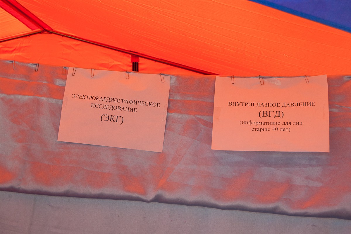 Впервые специалисты работали не внутри помещения, а снаружи. С целью профилактики сердечно-сосудистых и онкологических заболеваний любой желающий мог сделать электрокардиограмму, измерить внутриглазное и артериальное давление, рассчитать индекс массы тела и определить уровень глюкозы.