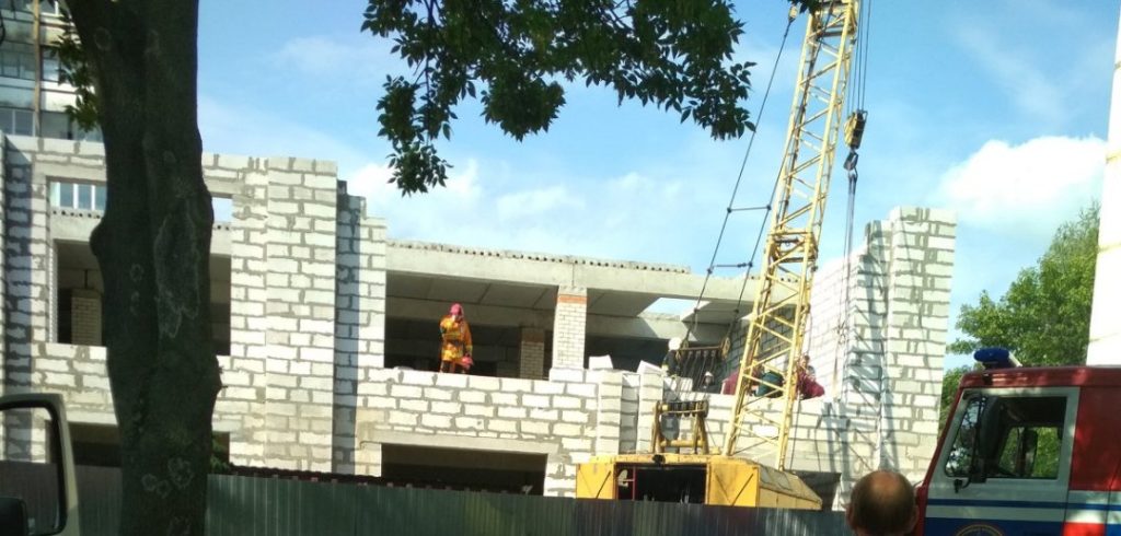 ЧП произошло во вторник, 20 августа. По словам очевидцев, у крана сломалась стрела, и она упала на стену, которая придавила рабочего.