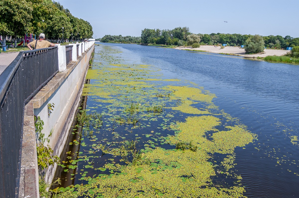 Правда, вниз с набережной лучше не смотреть. Ибо картина здесь не самая приятная. Идиллия сразу разбивается о суровую реальность. Мало того, что река в районе пляжа №1 заболачивается, и вода покрыта ряской и другой речной растительностью, так там еще можно увидеть и другие вещи, кроме кувшинок и плавающих уток.