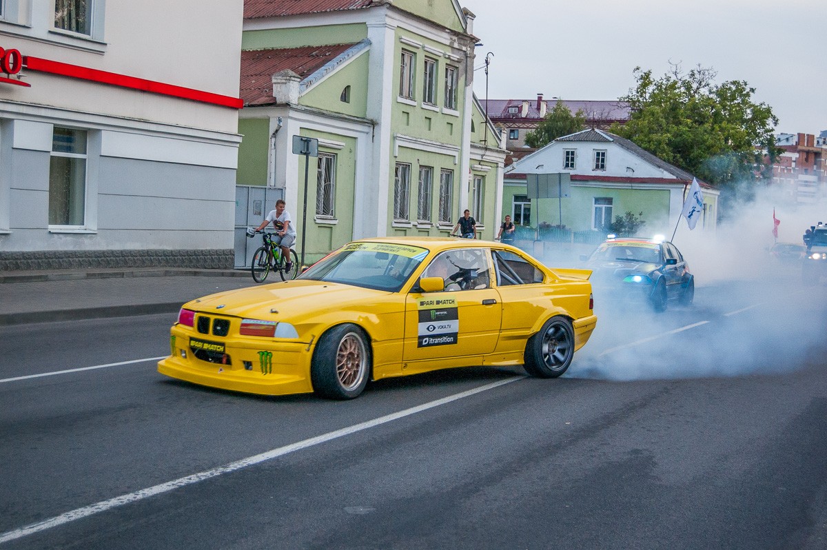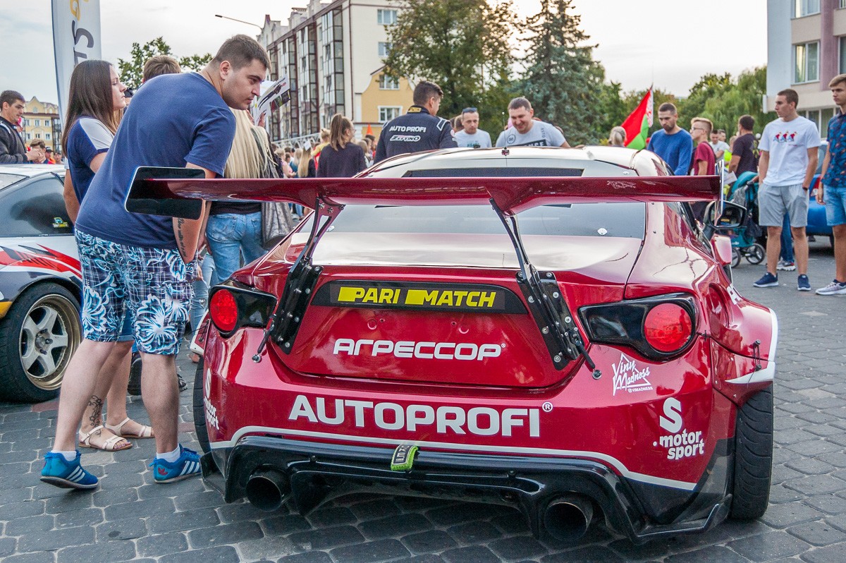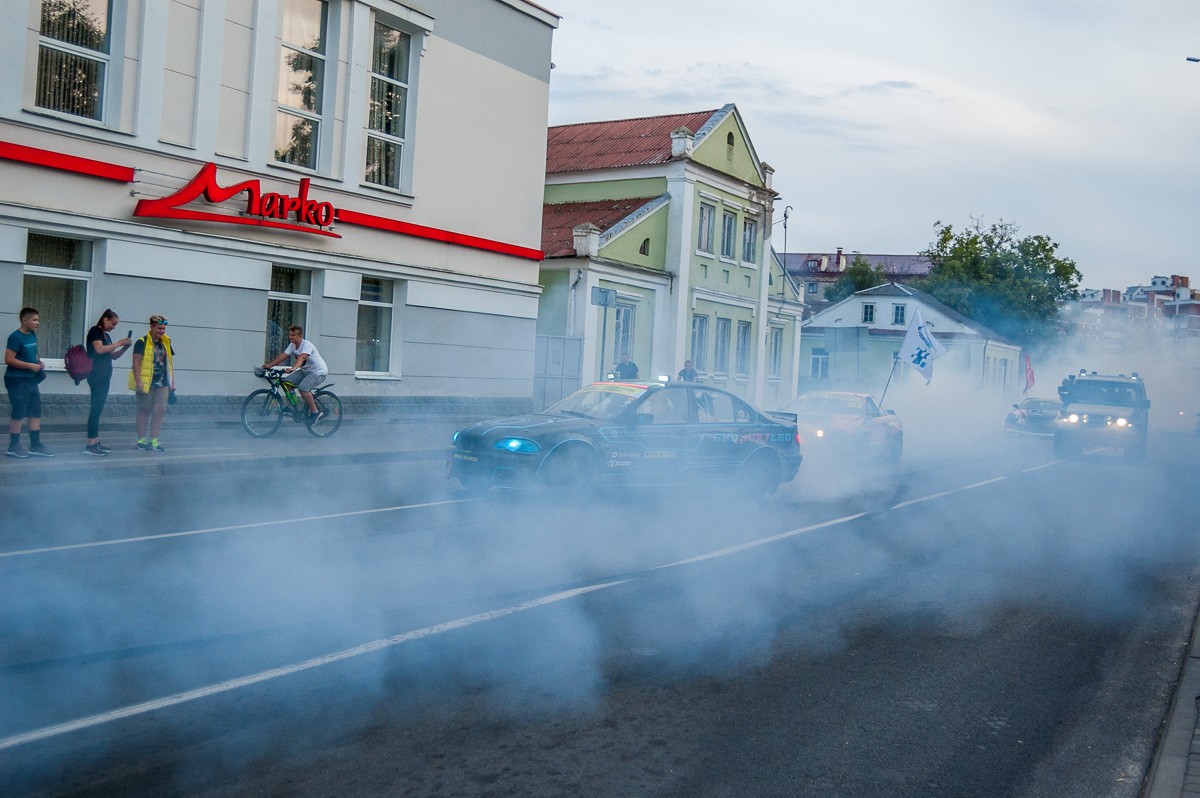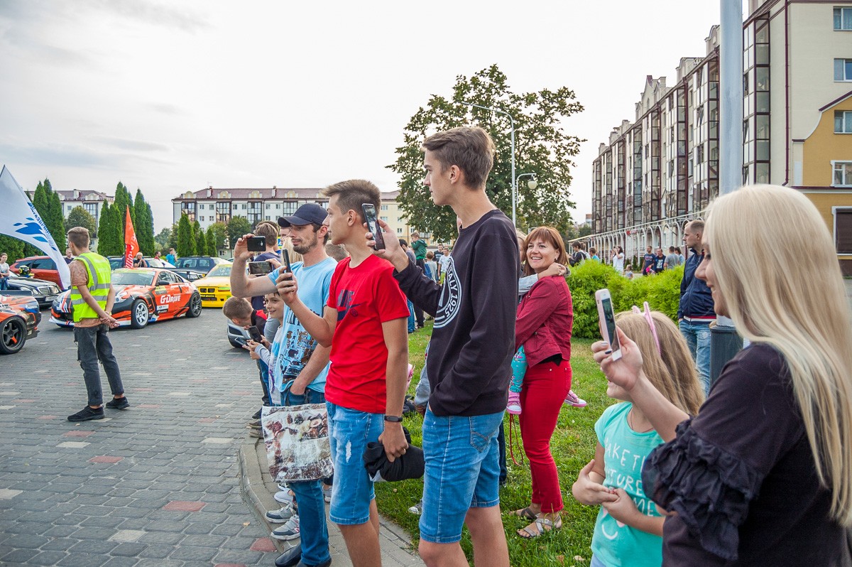 Парад на площади Ленина собрал немалое количество пинчан. Они пришли, чтобы увидеть машины и пилотов, которые завтра, в воскресенье, 8 августа, примут участие в чемпионате Беларуси по дрифту.