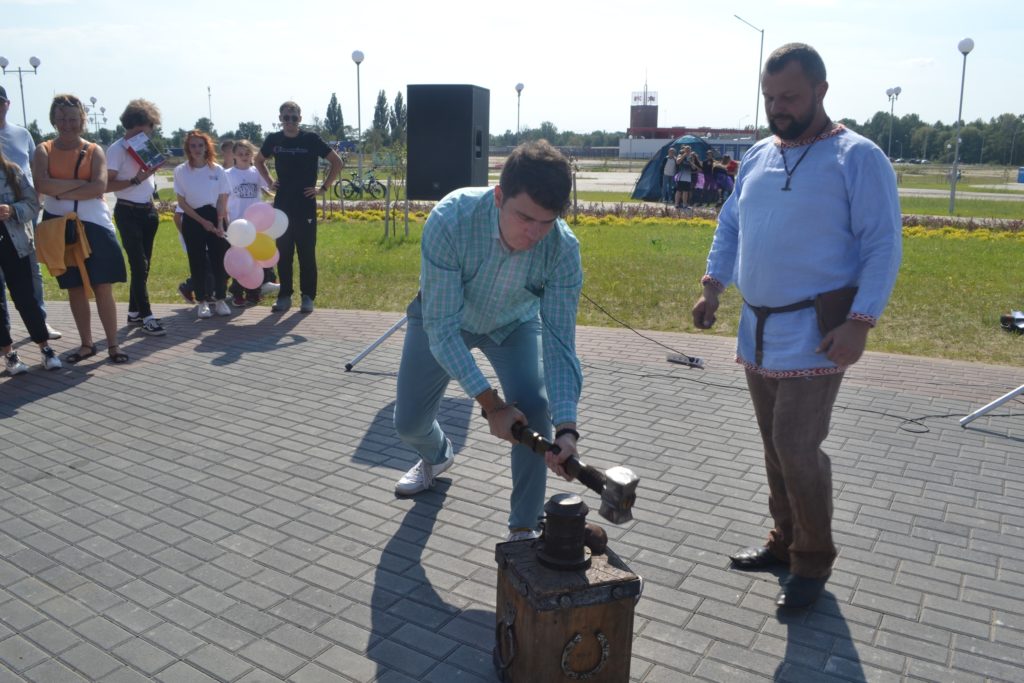 Съемочная группа телеканала «Беларусь-1» первой ударила молотком по наковальне, а вслед за ними это сделали другие брестчане и гости города.