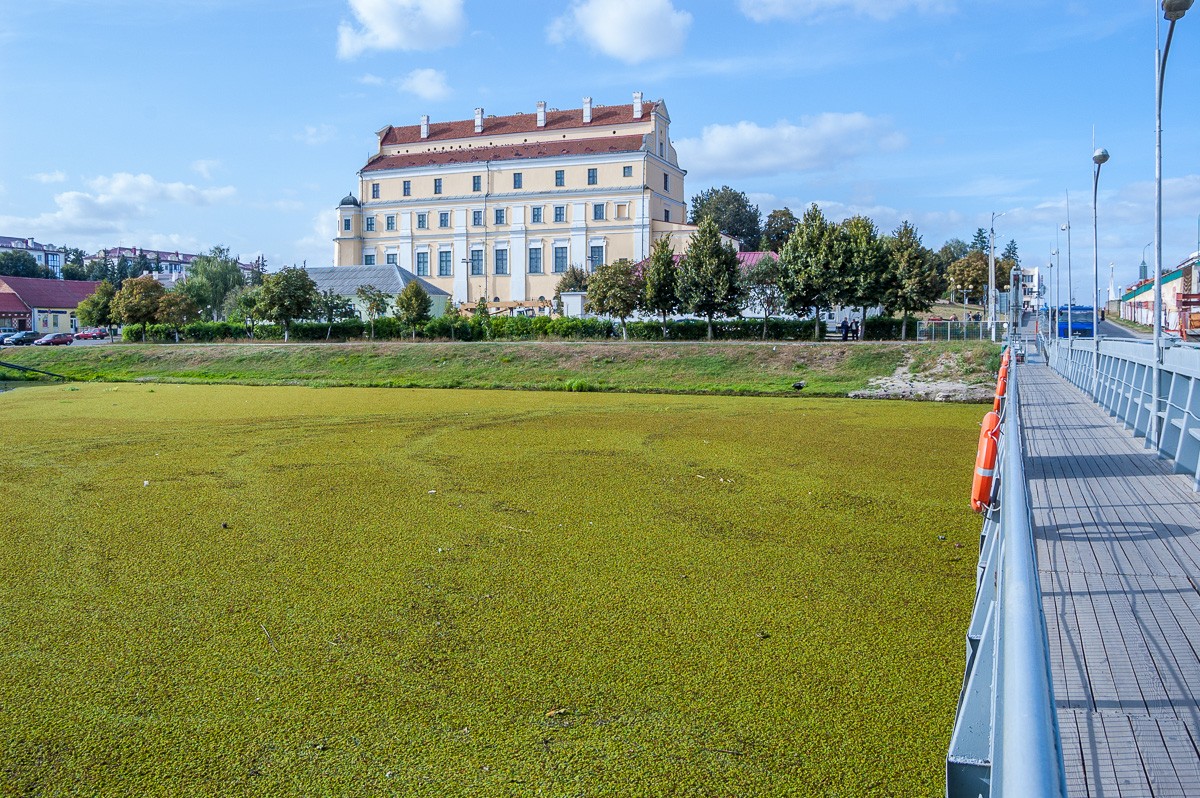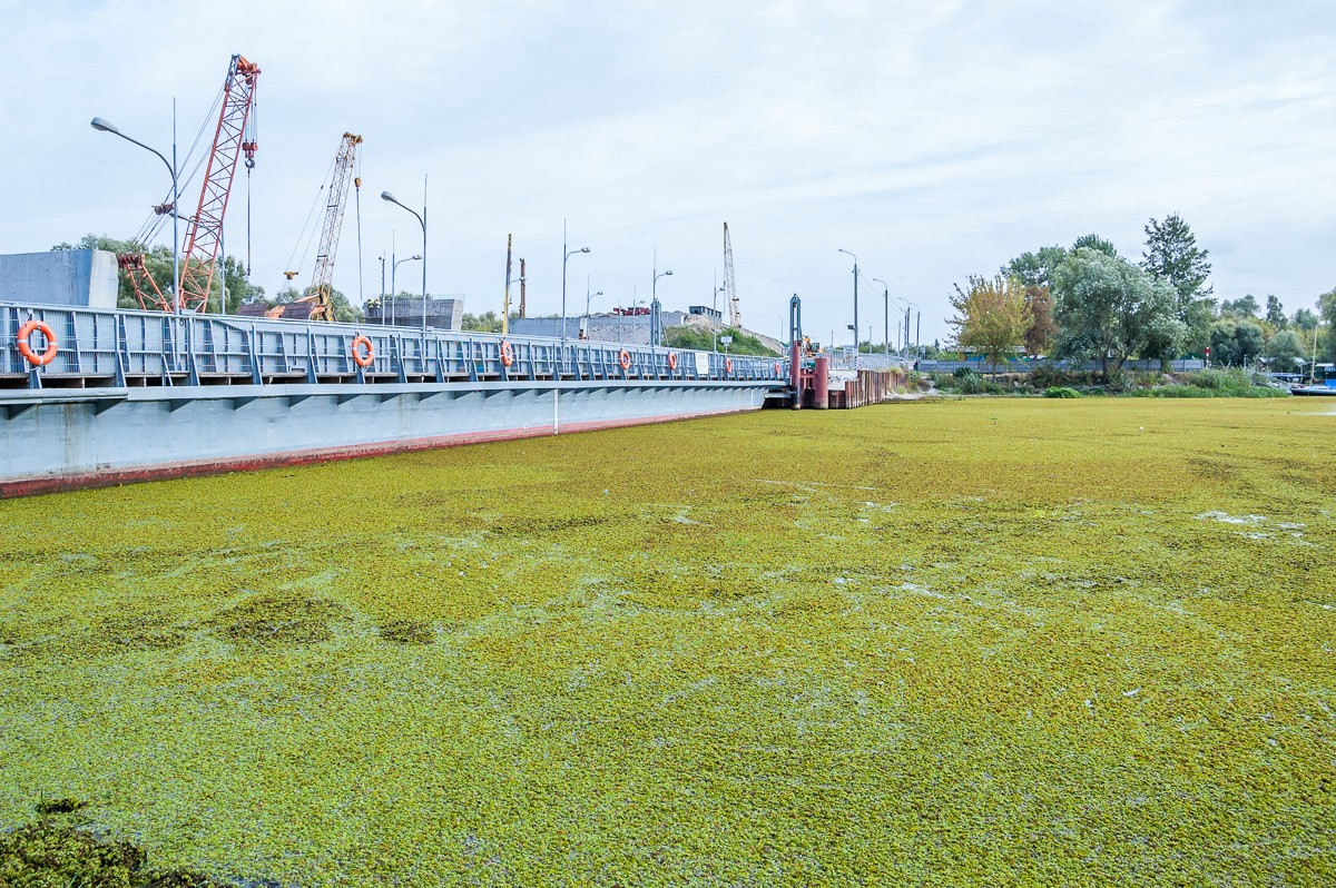 Как нам ответили в Пинской городской и районной инспекции природных ресурсов и охраны окружающей среды, причиной зарастания реки Пина является совокупность многих факторов. Среди них и теплый сентябрь, и отсутствие течения из-за строящегося моста, и низкий уровень воды в водоемах.