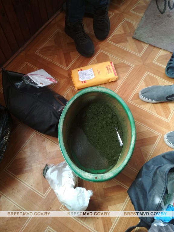 При обыске по месту жительства пинчанина правоохранителями было обнаружено более 8 кг вещества зеленого цвета, полиэтиленовые пакеты и оборудование для расфасовки.