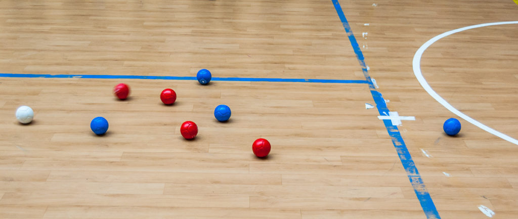Игра проходит на специально размеченной площадке. В игре используются кожаные мячи двух цветов – красные и синие (по 6 штук), а также один белый шар меньшего размера, называемый джэком.