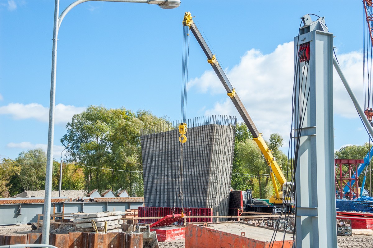 Железобетонные балки уложили на первую, уже укрепленную опору моста. Такая работа будет вестись и дальше: будут по очереди укрепляться все опоры, бетонироваться и только затем будут устанавливаться перекрытия. Некоторые из них будут выполнены из железобетона, а те, которые будут находиться над рекой,- из металла.