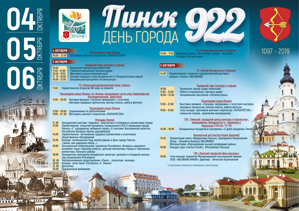12.00 Торжественное открытие праздника, посвященного 922-летию Пинска с участием Ирины Дорофеевой