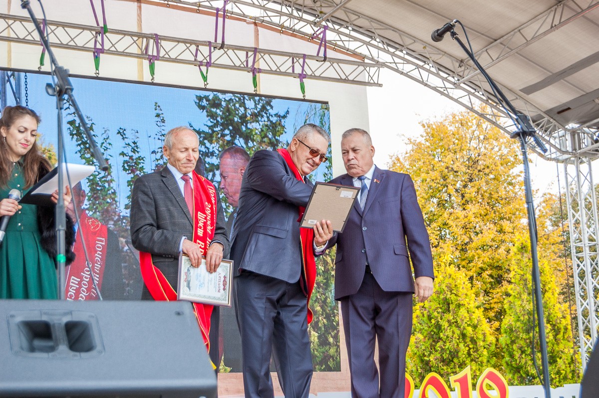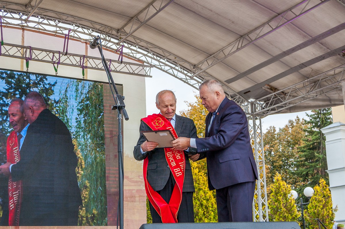 Кульминацией официальной церемонии стало присвоение звания «Почетный гражданин города Пинска» за вклад в экономическое развитие города двум бывшим председателям Пинского горисполкома. Почетный статус получили Василий Шуст и Александр Гордич.