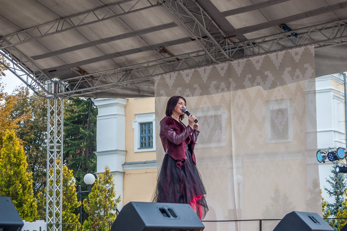 После этого череда песен и плясок продолжилась, а в завершение официальной части выступила Заслуженная артистка Республики Беларусь Ирина Дорофеева.