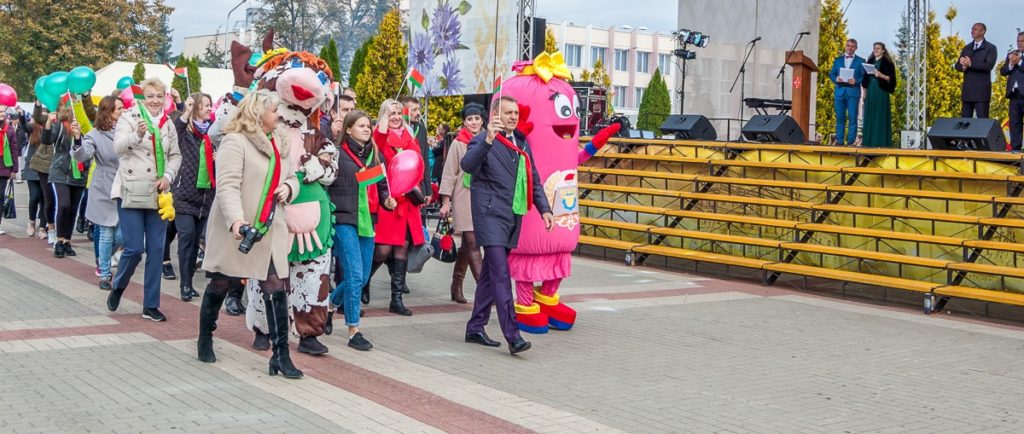 Официальная часть праздника началась с шествия трудовых коллективов, в котором участие приняли предприятия, организации и учреждения образования.