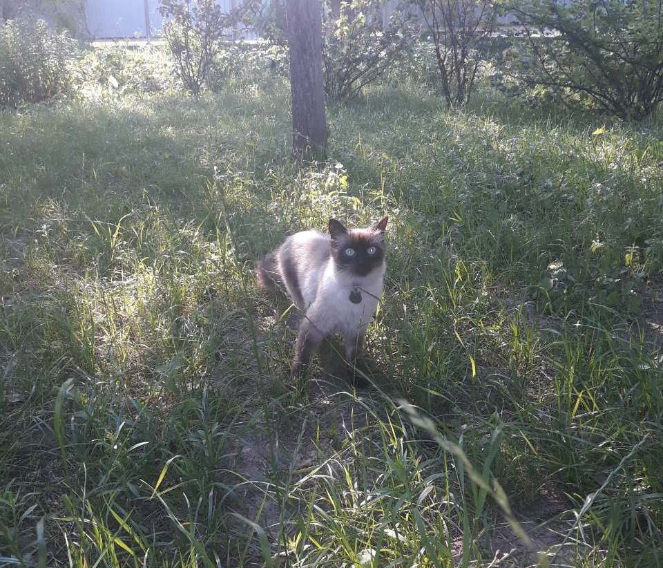 Кошки живут дома, ходят в лоток, привиты, стерилизованы, у каждой ветеринарный паспорт. И так как у нас частный дом, они гуляют по двору час- два. Сиамскую кошку звали Ника. Она носила ошейник и медальон с нашими контактами. Она была полноценным членом нашей семьи, и ее потеря стала для нас сильным ударом.