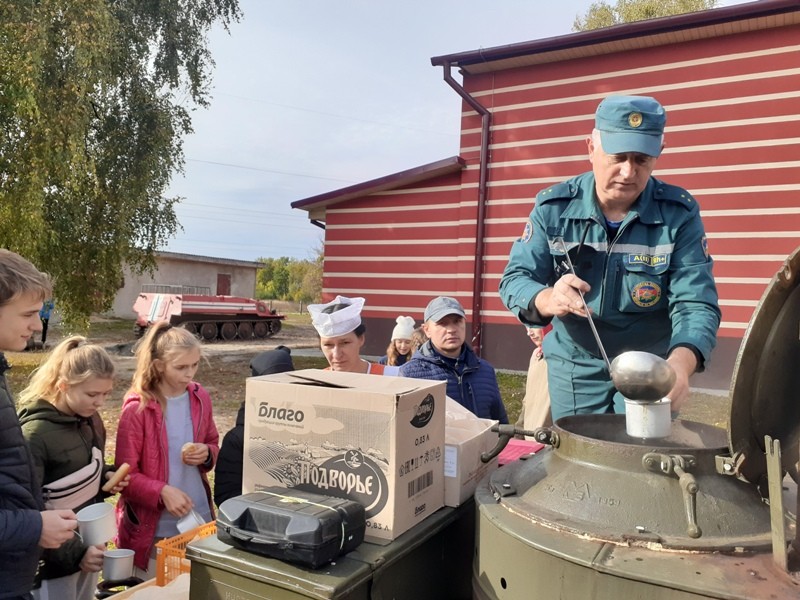По уже сложившейся приятной традиции, для ребят приготовили на полевой кухне горячую кашу и чай.