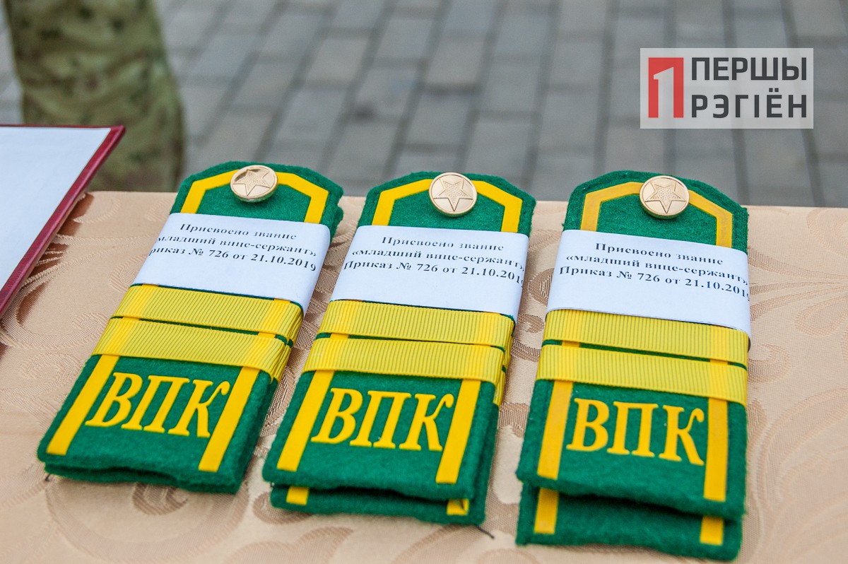 Начальник Пинского погранотряда Андрей Волков и председатель Пинской городской организации ОО «Белорусский союз ветеранов органов пограничной службы» Анатолий Ксёндзык приняли у школьников торжественное обязательство, а также вручили всем им удостоверения вице-курсантов и погоны младших вице-сержантов командирам отделений.