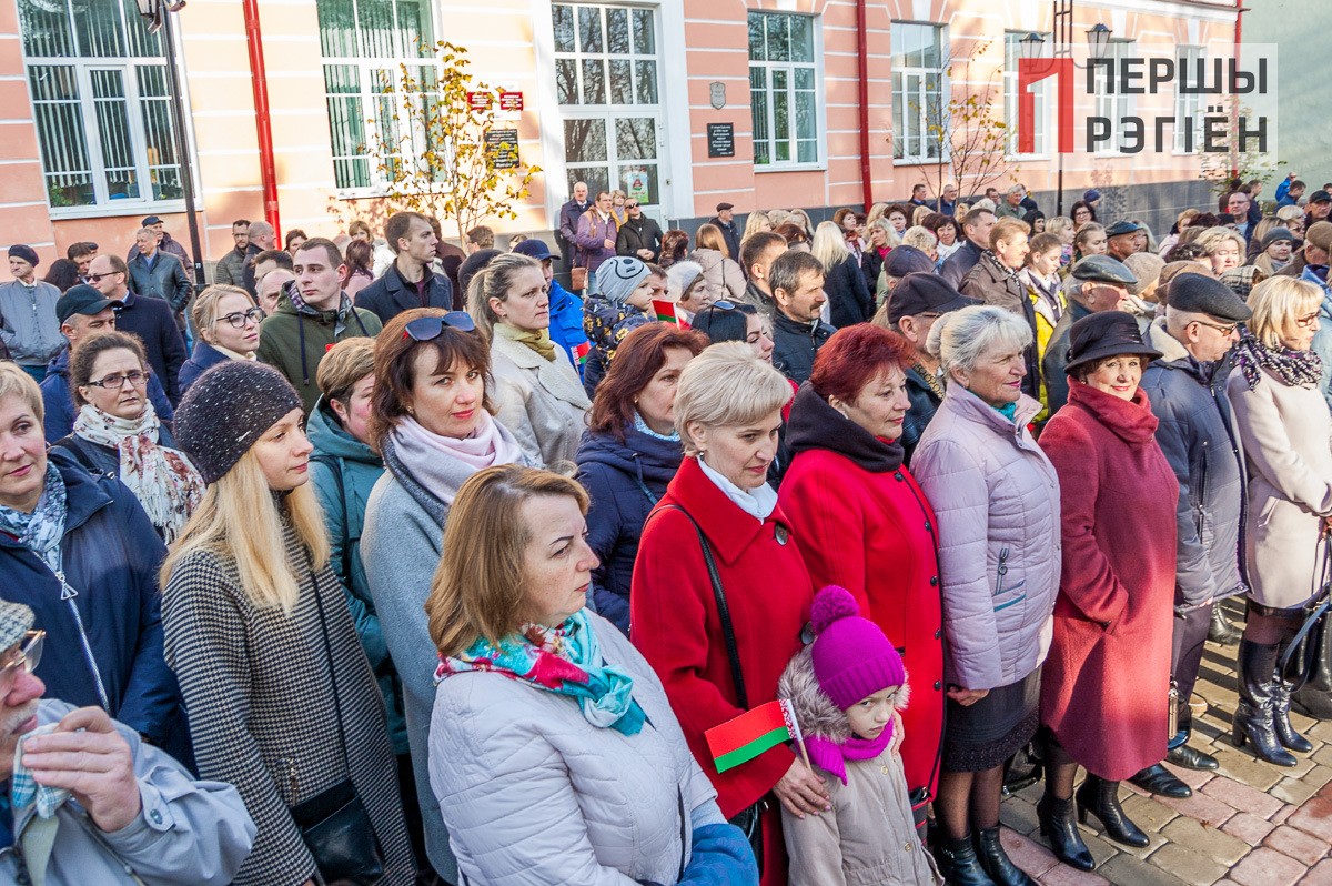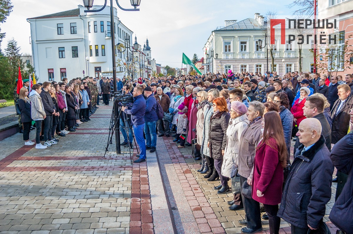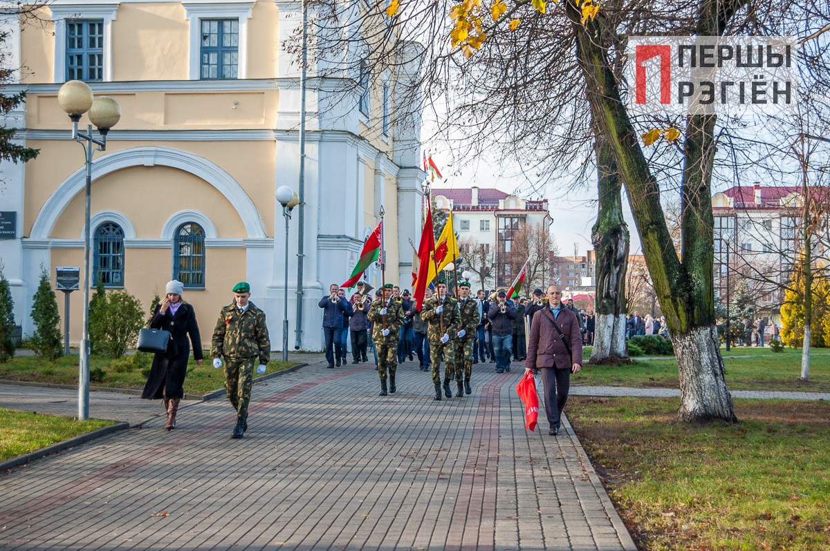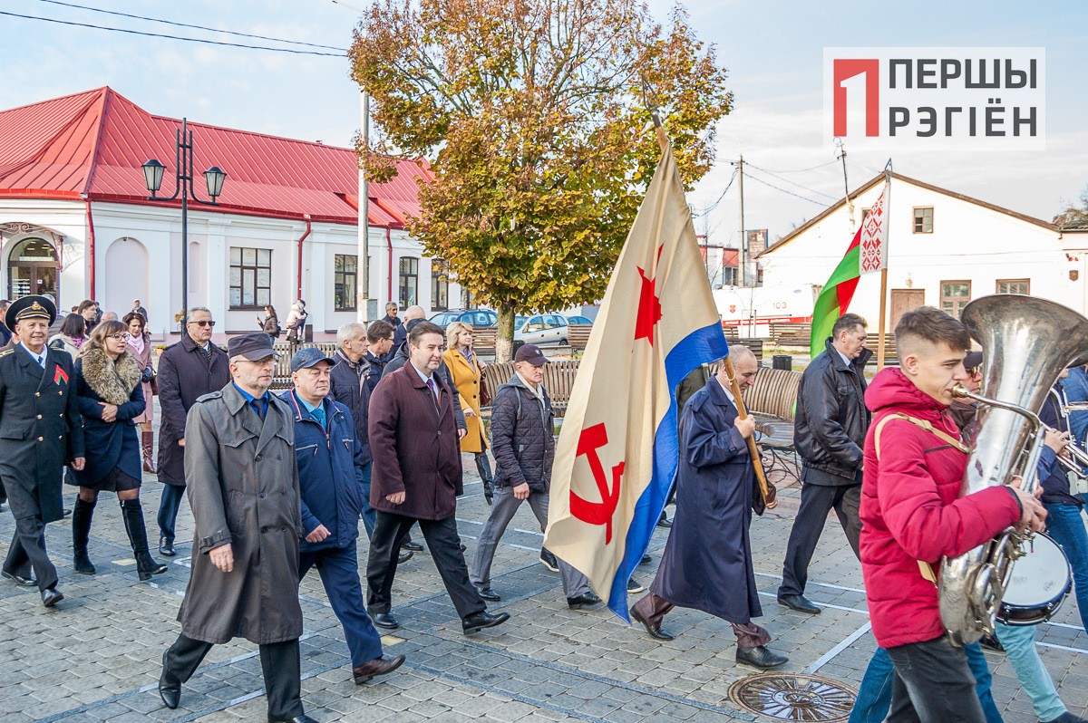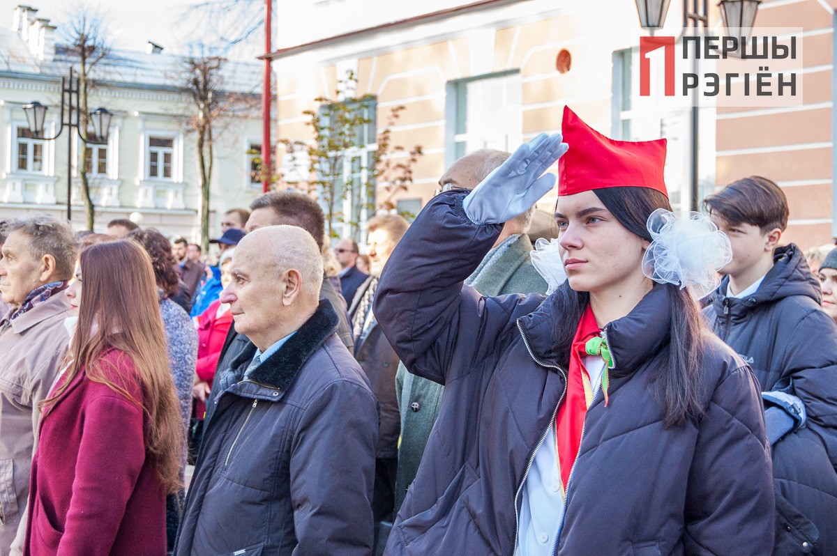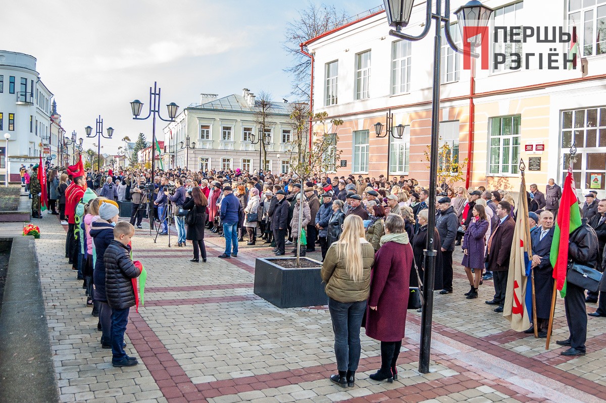 Поздравительные речи от городской власти, ответные поздравления от молодежи, и, конечно же, много слов о том, что дала советская власть белорусскому народу. Правда, нужно отметить, справедливости ради, здесь же вспомнили и репрессии, и сталинские лагеря.