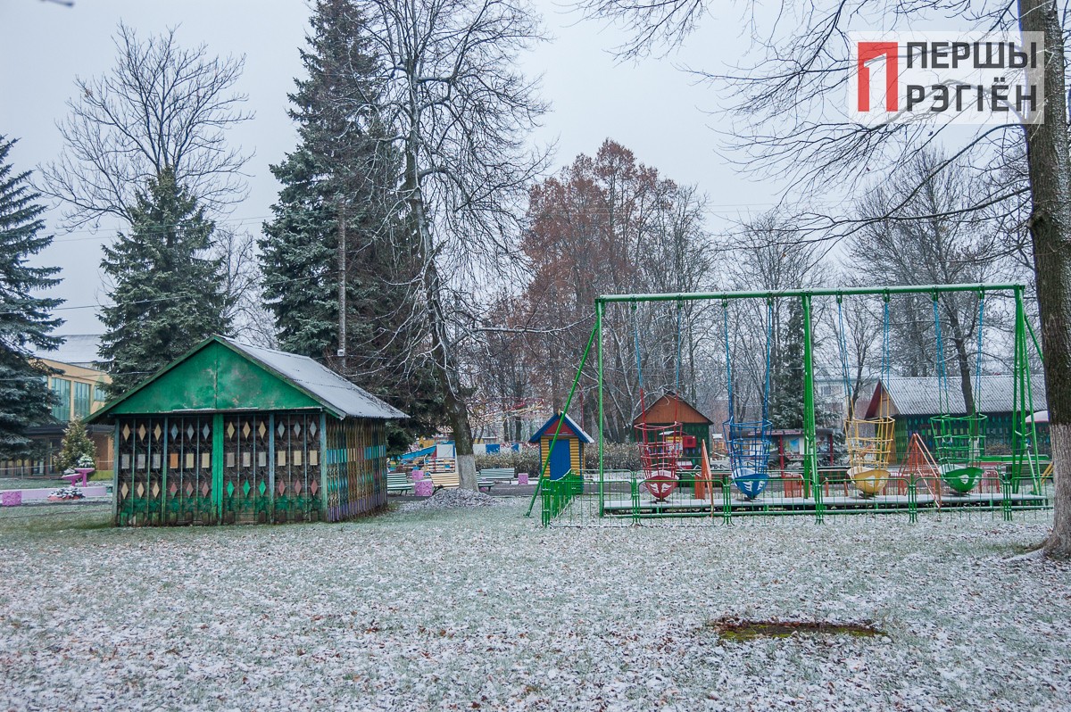 Во вторник, 26 ноября, первый снег продержался фактически до обеда и затем растаял. Предлагаем посмотреть, как выглядел район городского парка после выпадения первого снега.