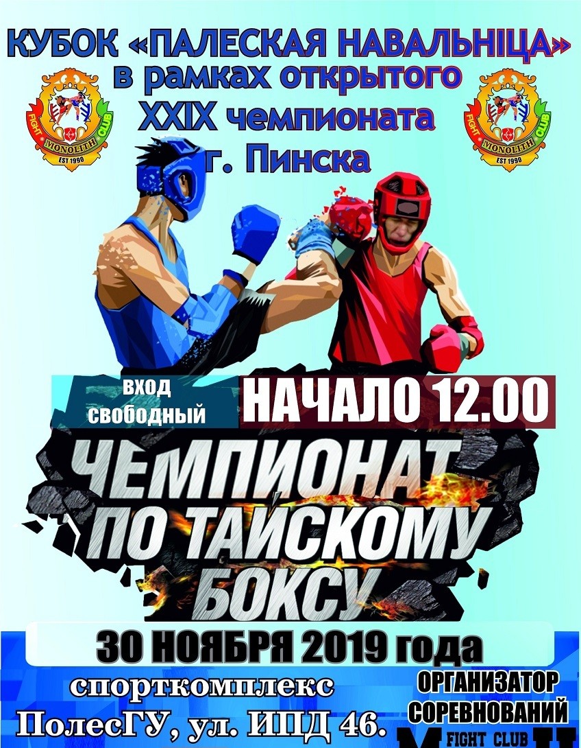 12.00- Чемпионат г.Пинска по тайскому боксу. Вход свободный.