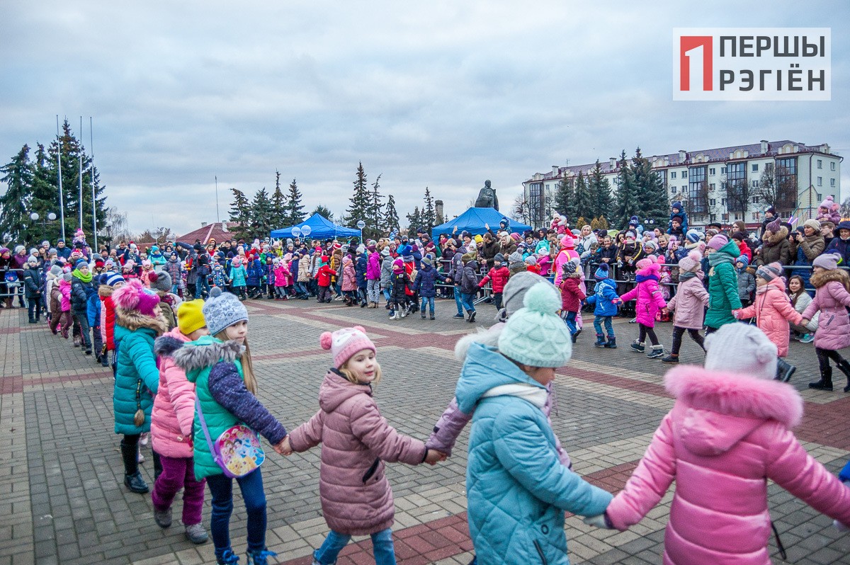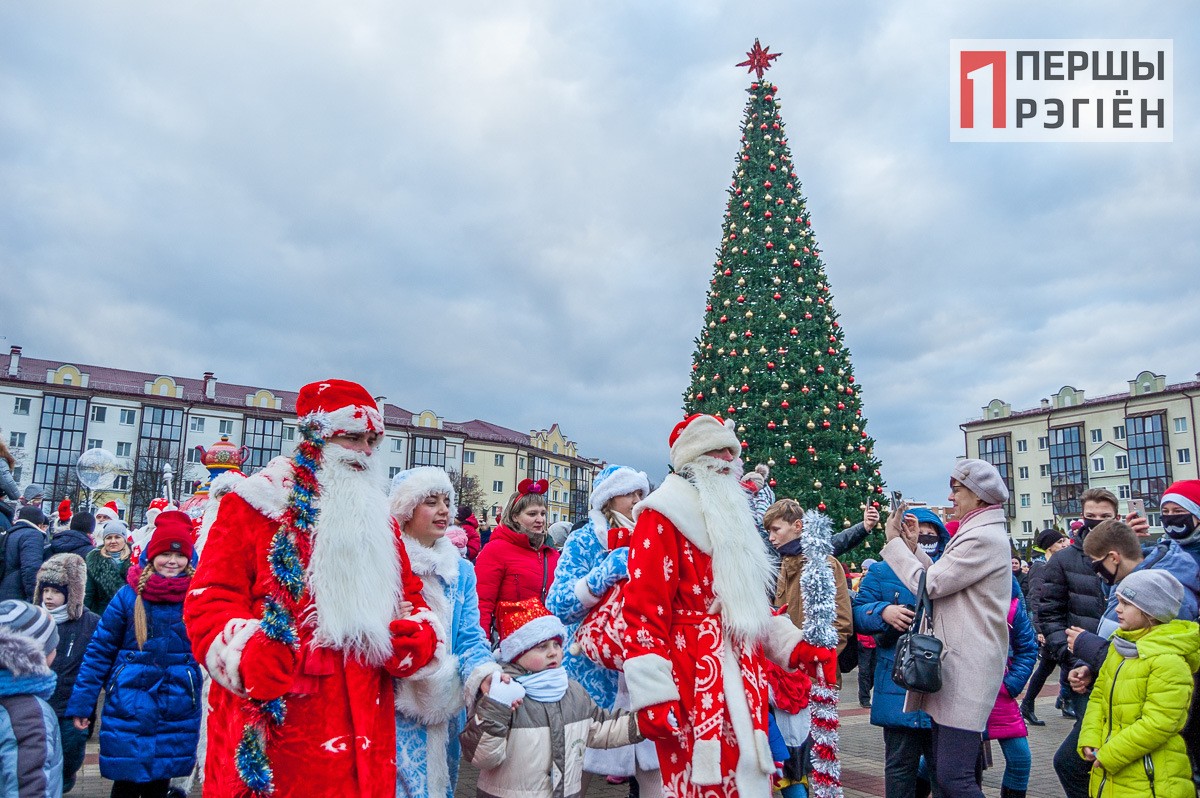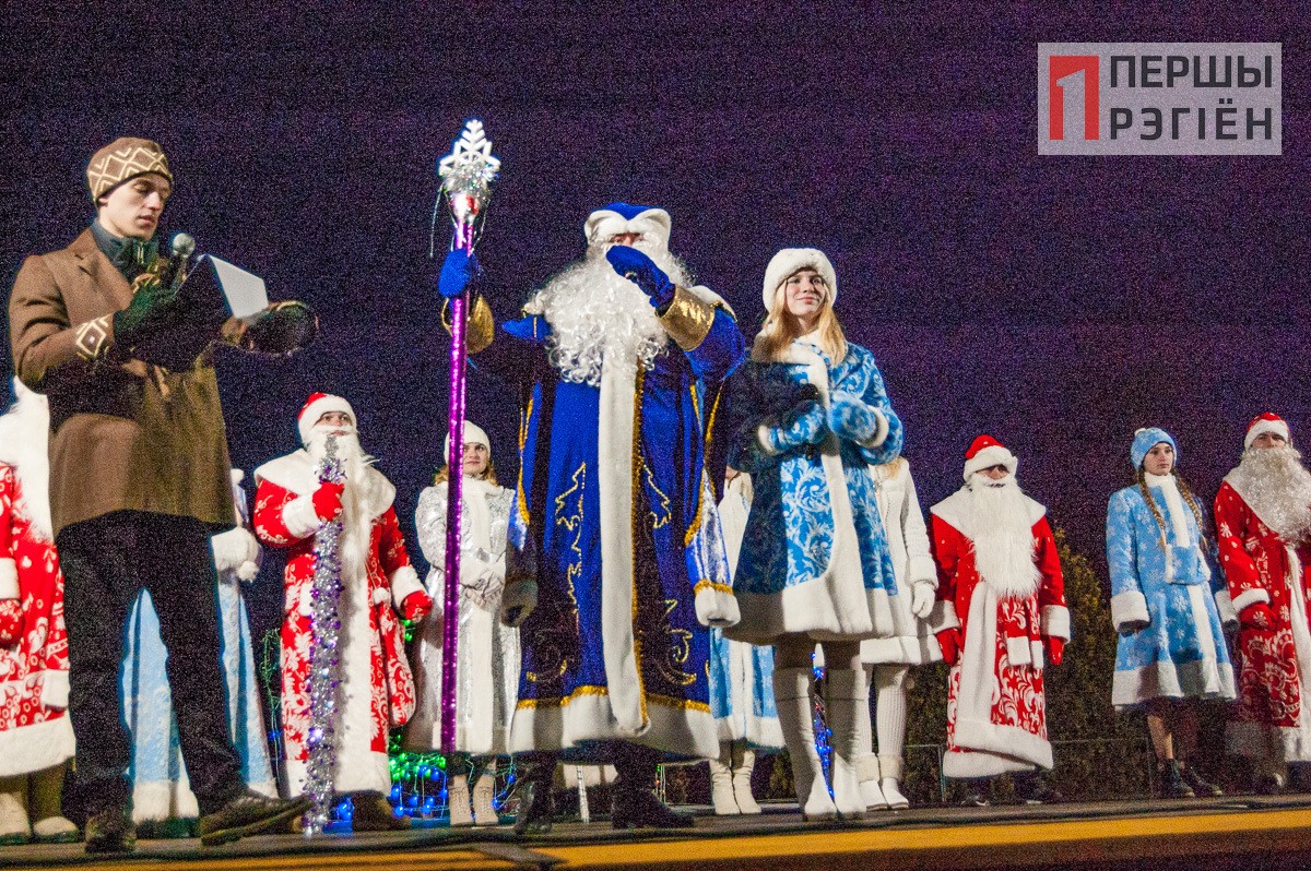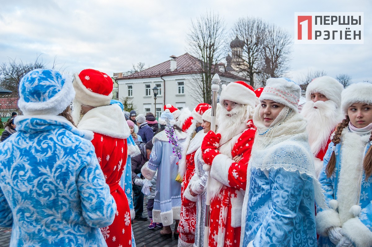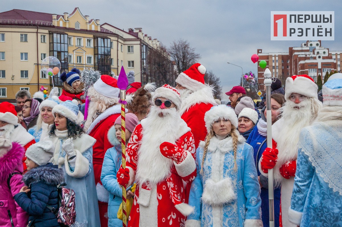 По улице Ленина прошел парад Дедов Морозов и Снегурочек. Его участники — представители разных организаций Пинска. Среди них: ясли- сад №5, № 9, № 37, педагогический и индустриально-педагогический колледжи, профессионально-технический колледж легкой промышленности и пинская центральная поликлиника.