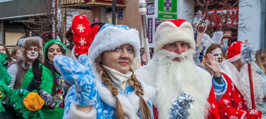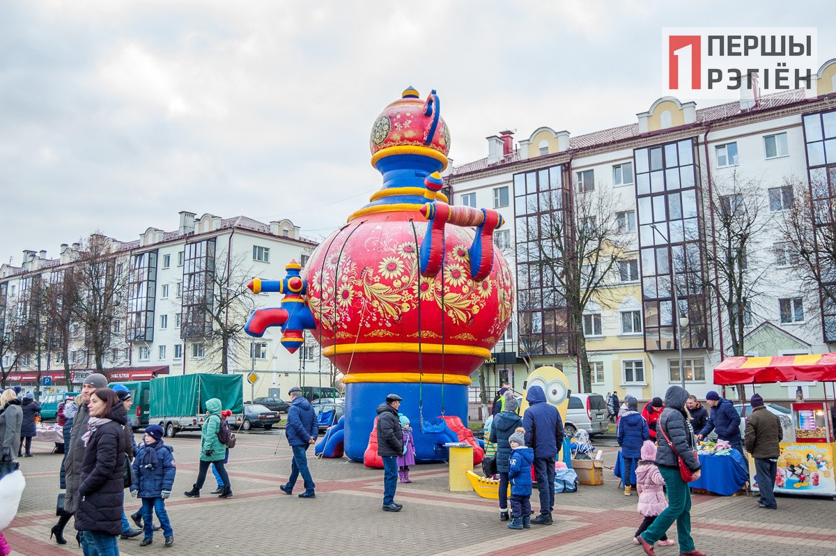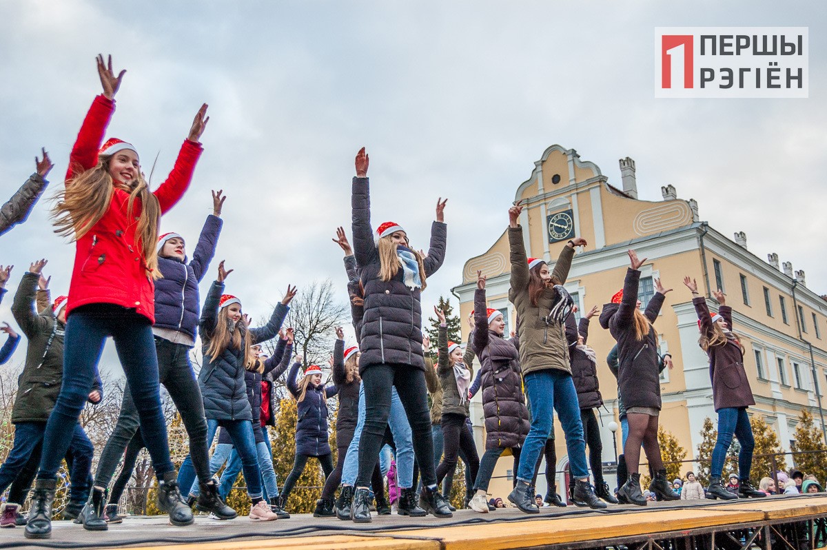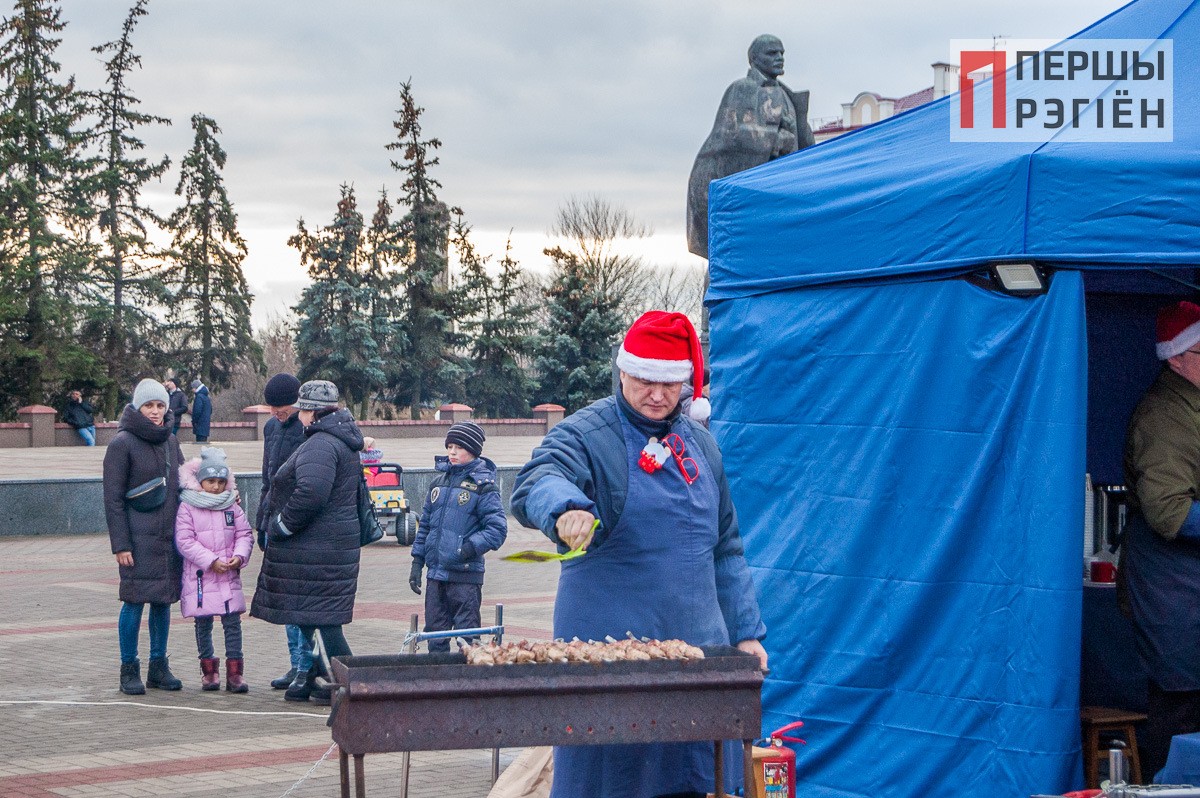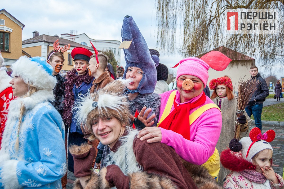 По улице Ленина прошел парад Дедов Морозов и Снегурочек. Его участники — представители разных организаций Пинска. Среди них: ясли- сад №5, № 9, № 37, педагогический и индустриально-педагогический колледжи, профессионально-технический колледж легкой промышленности и пинская центральная поликлиника.