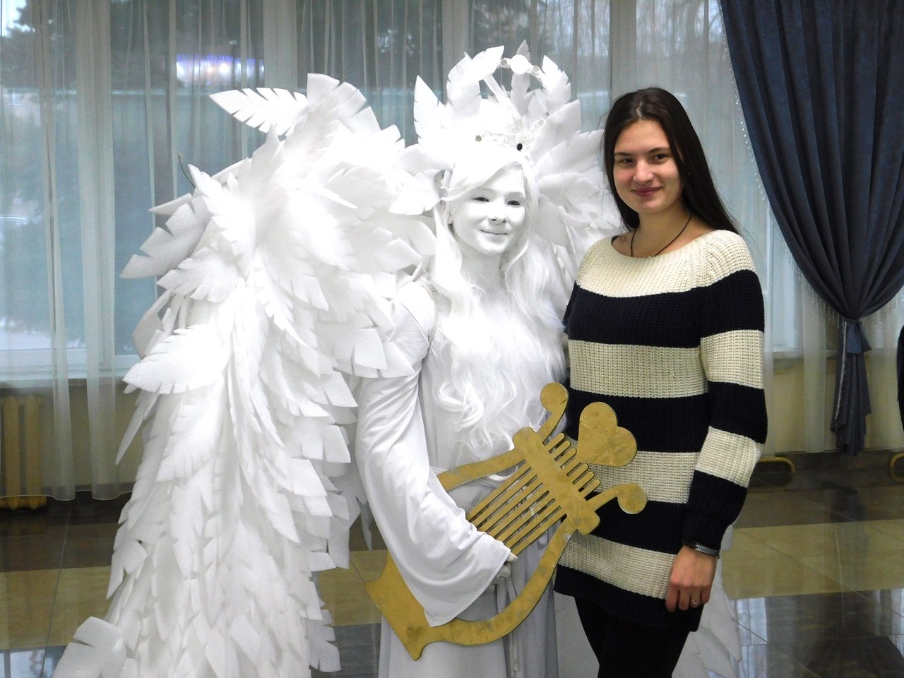 – Крылья совсем не тяжелые, как может показаться на первый взгляд, только с краской на лице не комфортно, – говорит Екатерина Алехнович.