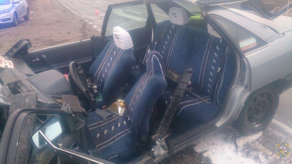 Мужчину из этого легкового автомобиля деблокировали работники МЧС при помощи специального инструмента.