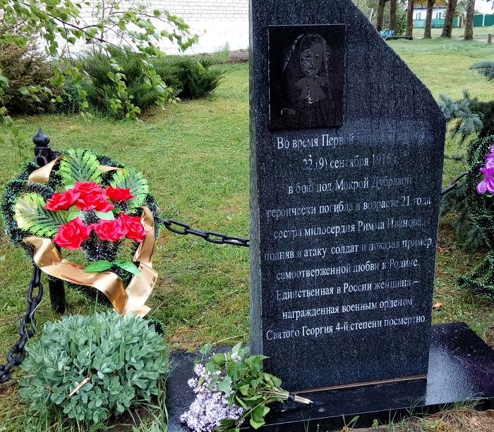Римма Иванова служила сестрой милосердия на фронте и отвечала за эвакуацию раненых с поля боя. Она получила смертельное ранение 9 (22) сентября 1915 года в бою под д. Мокрая Дуброва, когда после гибели двух офицеров, сама повела солдат в атаку… Ей было всего 21 год. Короткая, но наполненная героизмом жизнь.