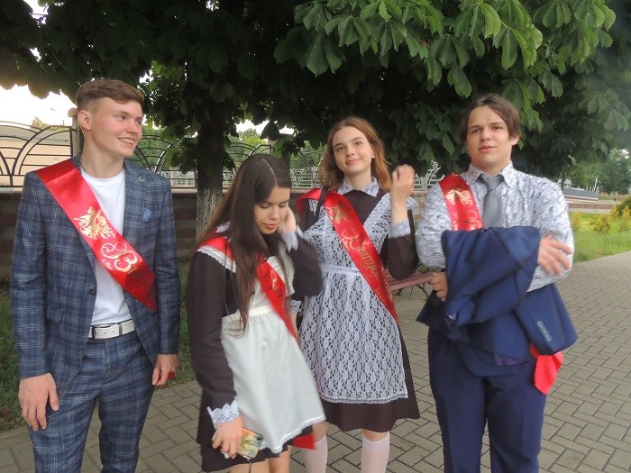 10 июня на пинской пешеходке многолюдно. Я искала в толпе юношей и девушек с красными ленточками – выпускников 2020 года. Но среди прогуливавшихся, таких не было. Уже отчаявшись, свернула на набережную, и вдруг увидела стройную девушку с красной ленточкой. Поспешила навстречу.