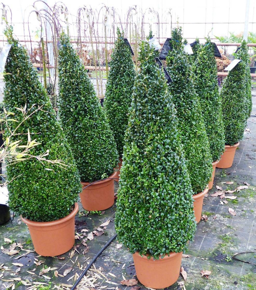 Для получения симметричной пирамиды нарисуйте вокруг кустарника треугольник или квадрат. На их вершинах установите рейки и скрепите их на вершине при помощи веревки. Вершина должна располагаться по центру будущей фигуры. Рейки будут служить вам боковыми ребрами пирамиды. Все грани подстригают одновременно, поскольку внешний вид пирамиды зависит от ровности ее сторон. Лучше всего для пирамиды выбирают самшит мелколистовой.