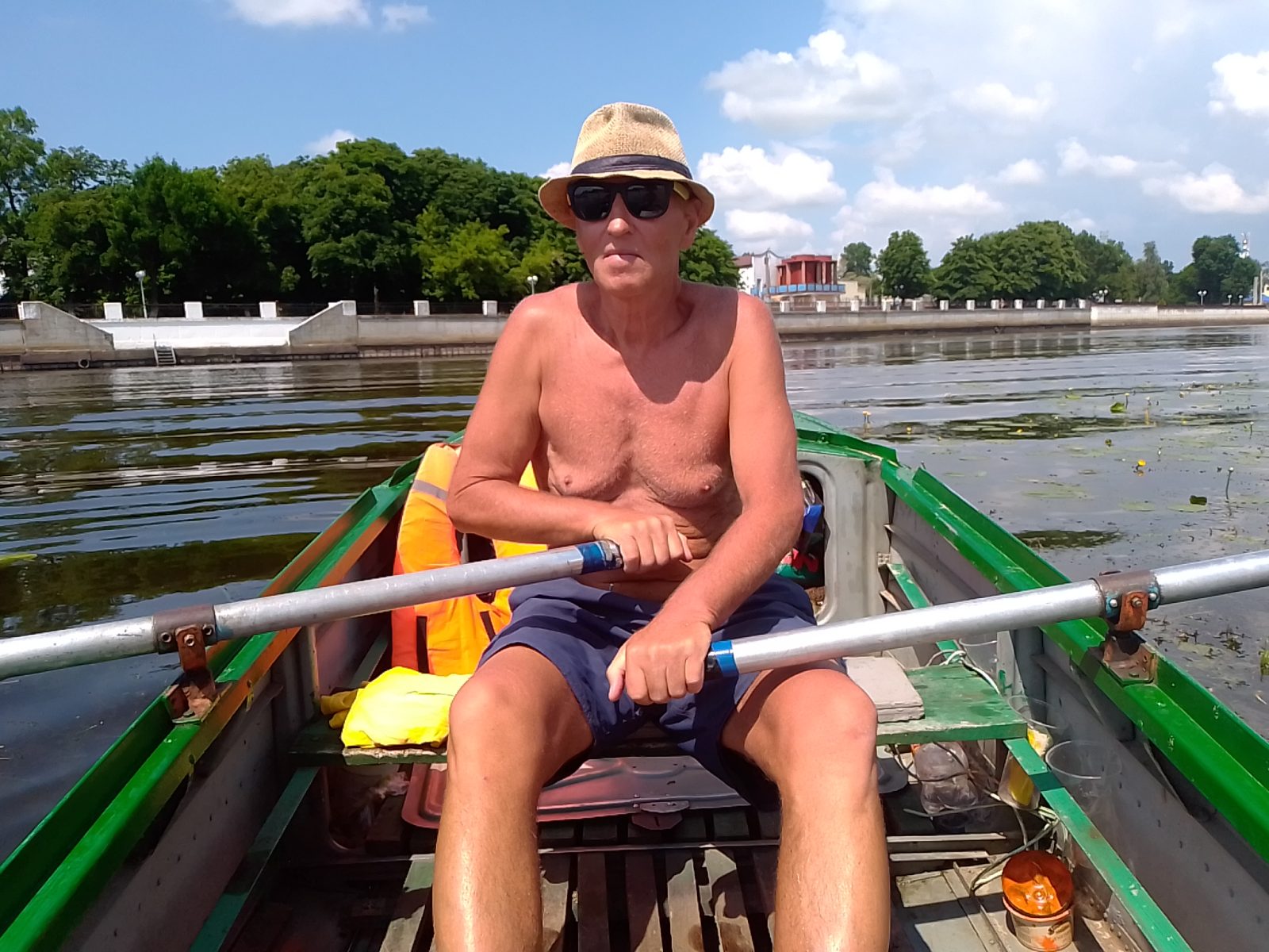 Мой собеседник занимается ремонтом деревянного трапика своего водного такси на ручной тяге (последствия транспортировки серьезной женщины ) и заодно подробно рассказывает для «Первого Пинского» об особенностях своего бизнеса.