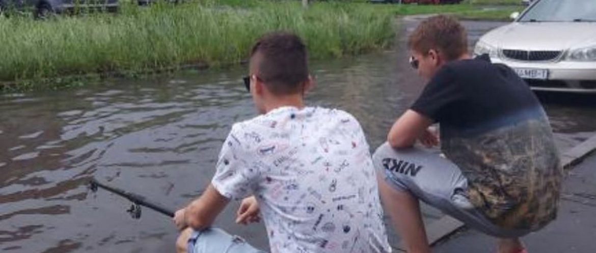 Самые веселые уже после ливня вышли на «заливы» с удочками:
