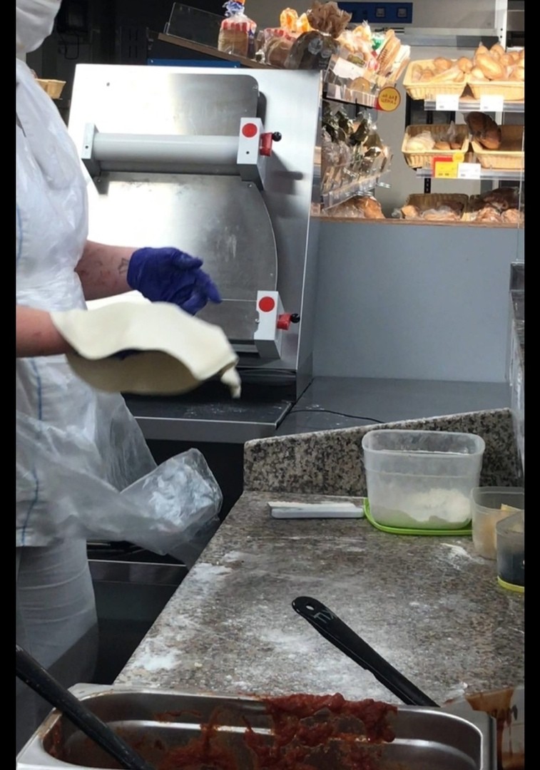 Фотографии приложил. Как видите она ложит пиццу на руку так, чтобы часть ее протерлась по местам ее творчества. Ни мне судить, ни Вам. Ни в коем случае не унижаю магазин, а просто имейте ввиду, стоит ли кушать такое. Каждому своё», — отметил автор поста.