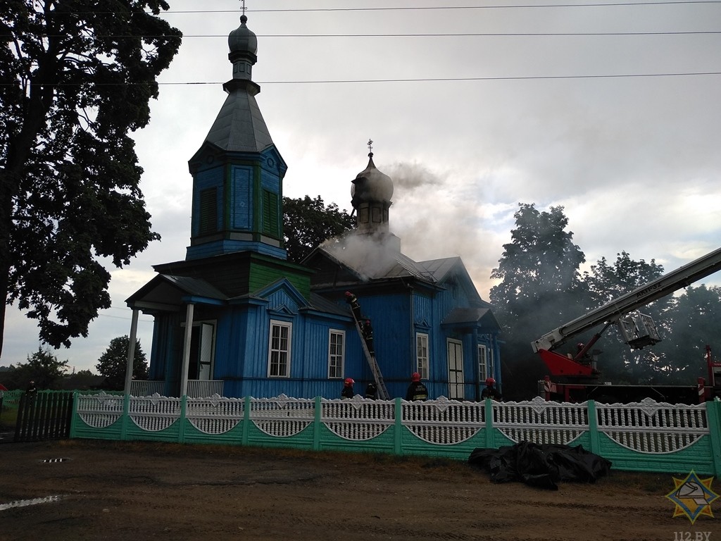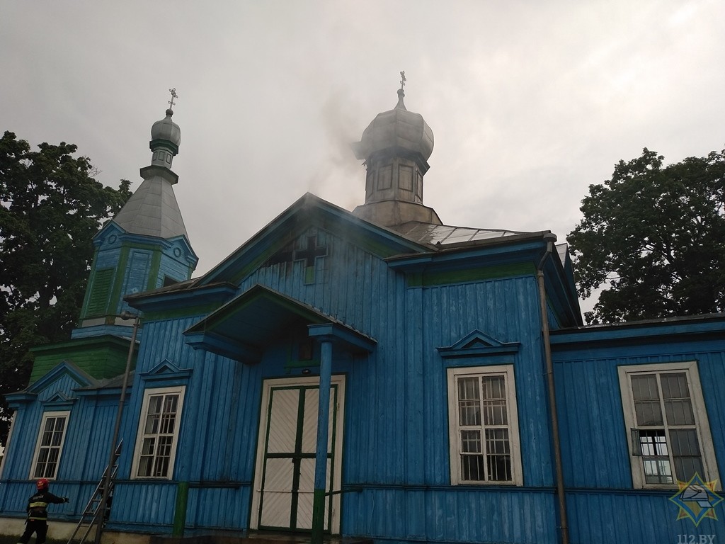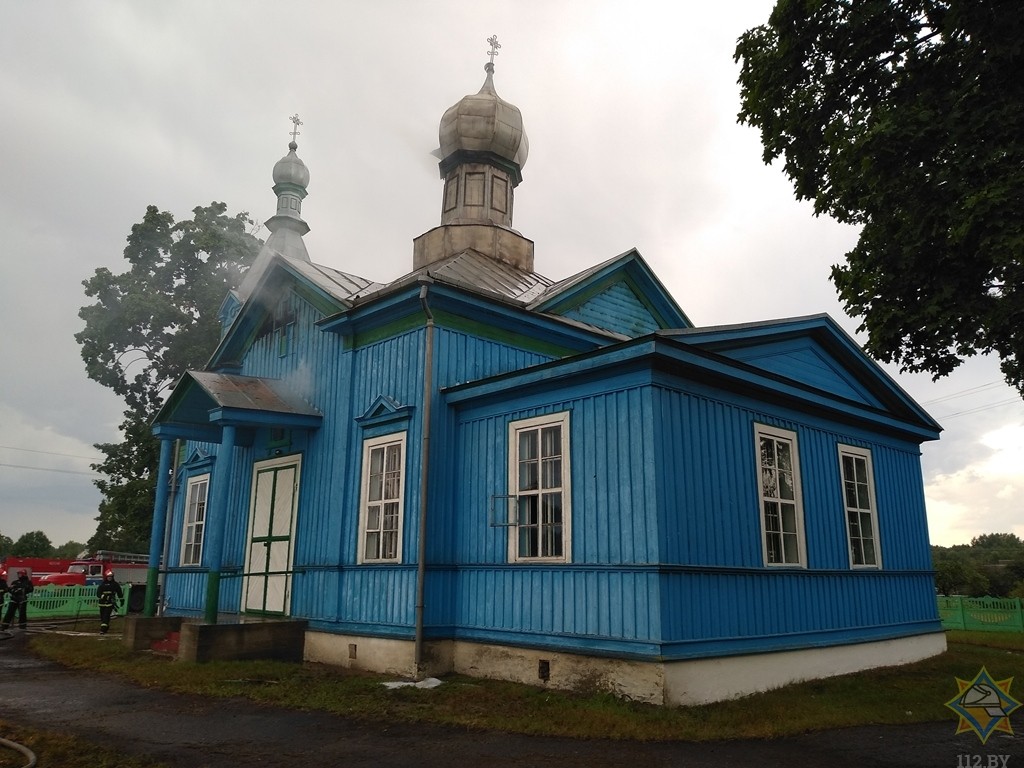 Здание церкви размерами 15х25 метров построено в 1888 году и включено в Государственный список историко-культурных ценностей Республики Беларусь. Сотрудниками МЧС была проведена эвакуация материальных ценностей.