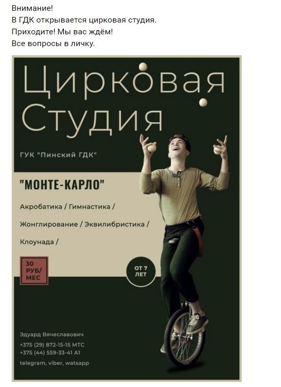 В Пинском ГДК можно будет обучаться цирковому мастерству.