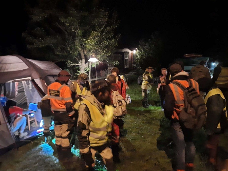 Першае, што заўважылі, як пад’ехалі на месца — гэта скапленне машын у вёсцы. Былі тут джыпы, вездзяходы, легкавушкі, а таксама пару аўтамабіляў МНС. На тэрыторыі аднаго дома быў разбіты лагер. Стаяла палатка. Гарэлі ліхтары. Было шматлюдна і людзі яшчэ прыязджалі.