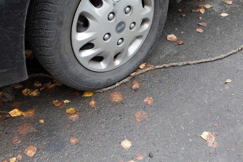 Одна из лошадей была с длинной верёвкой, которая зацепилась за автомобиль. Лошади смогли уйти, когда веревку отцепили люди.