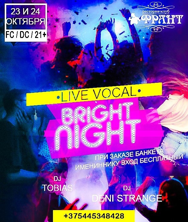 Ресторан-клуб «Франт» приглашает любителей позажигать на танцполе в пятницу, 23 октября, и в субботу, 24 октября.